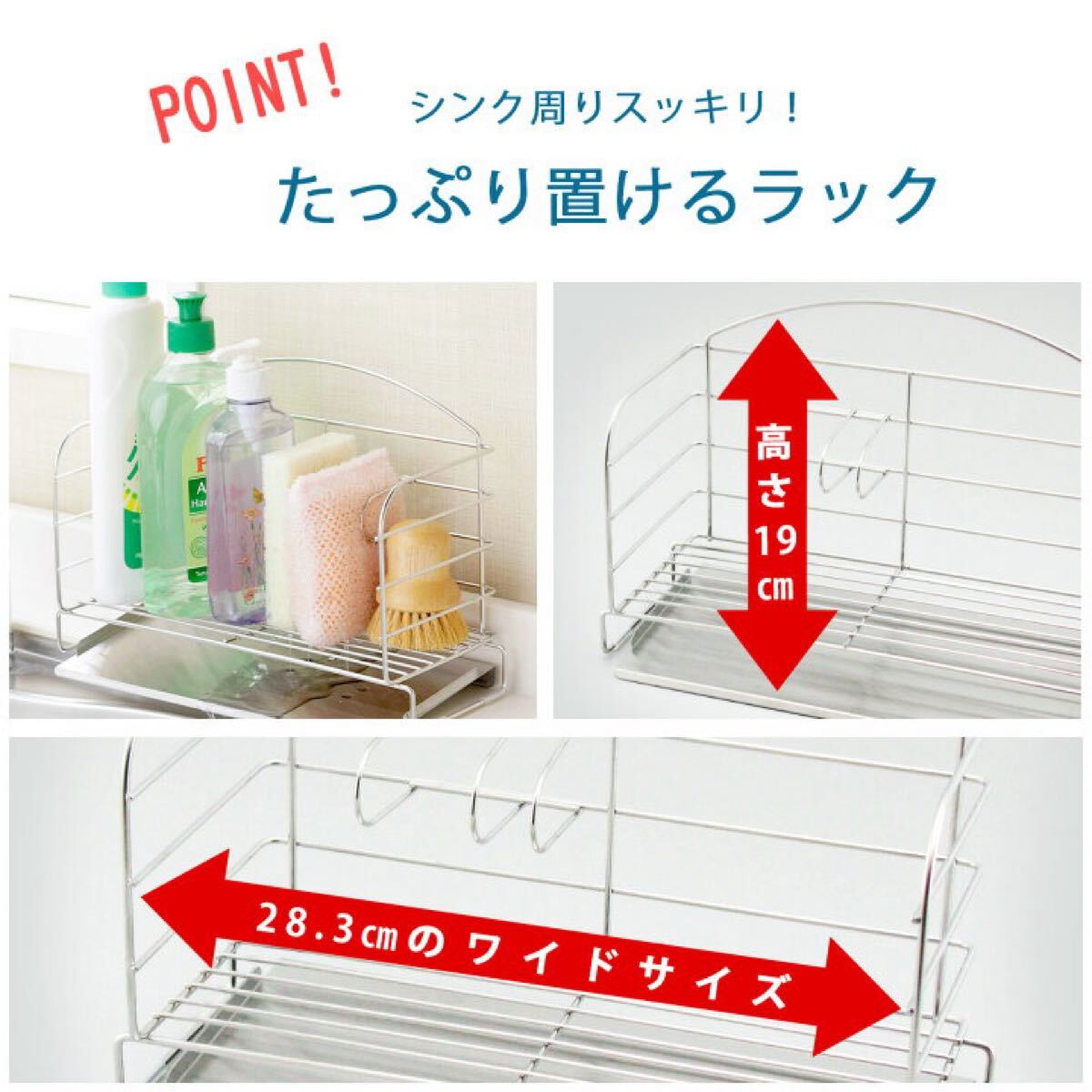 洗剤やスポンジなどをたっぷり置けるワイドラックです。高さがあるので、背の高い洗剤もカバーします。間口が広いので、出し入れもラクラク。