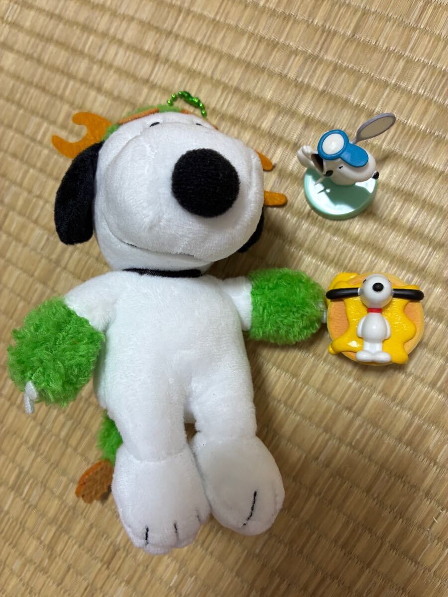 スヌーピーのぬいぐるみとミニフィギュア2体のセット。2024年辰年限定販売です