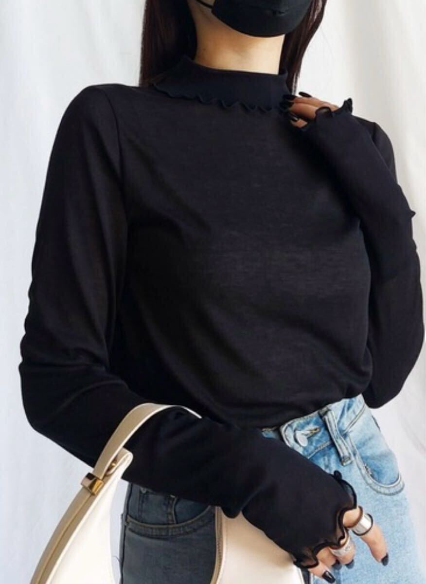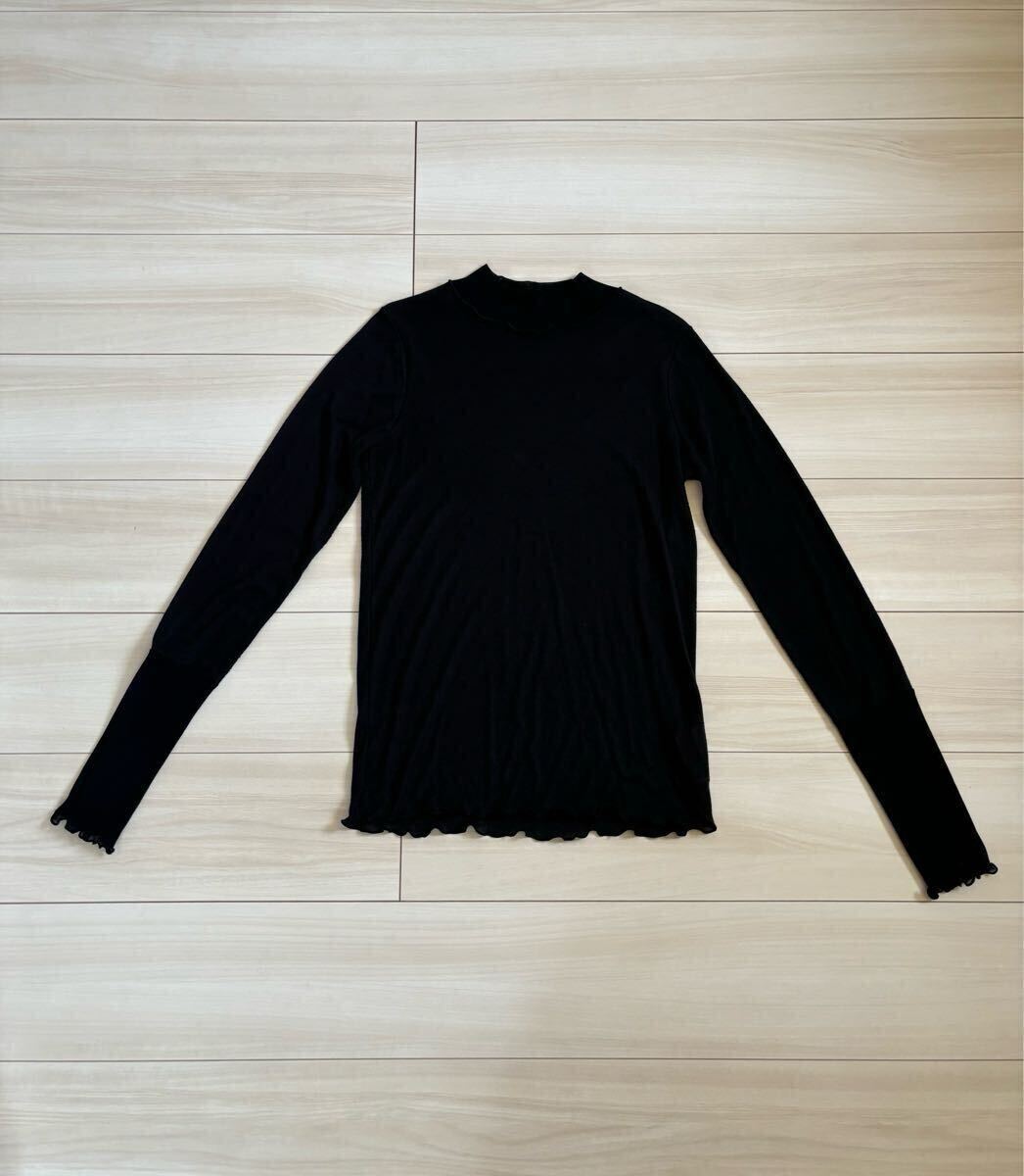 me+em select シアー切替プチハイネックメロートップス ブラックです。