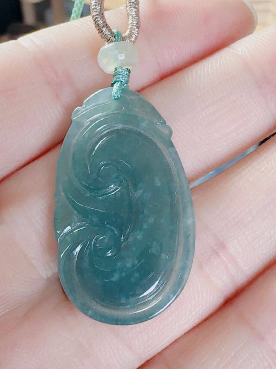 R2-01331天然本翡翠《本物保証》氷種藍水ひすい「如意」ペンダント 一品一図 高品質 一点物 魔除け 昇進 成功 風水 金運 財運 幸運 縁起物