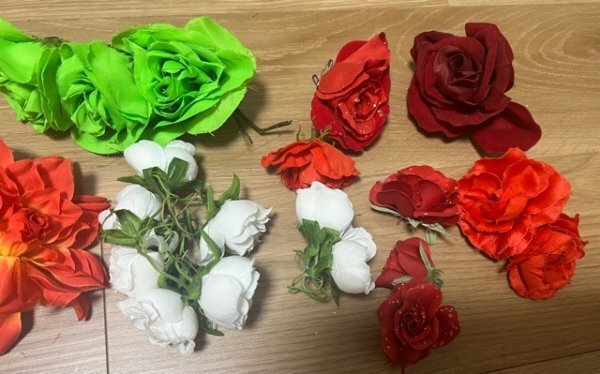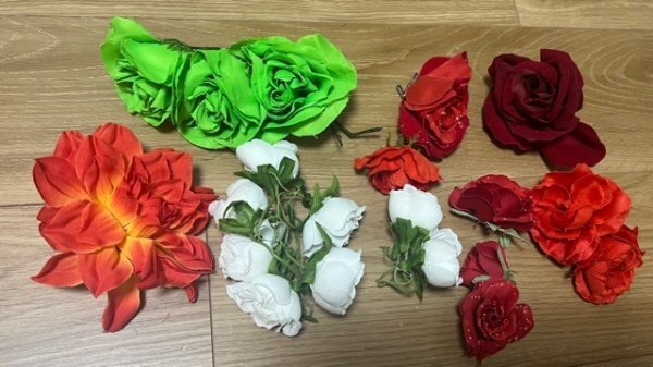 ★★発表会ヘアー衣装 バラ 赤 グリーン★★