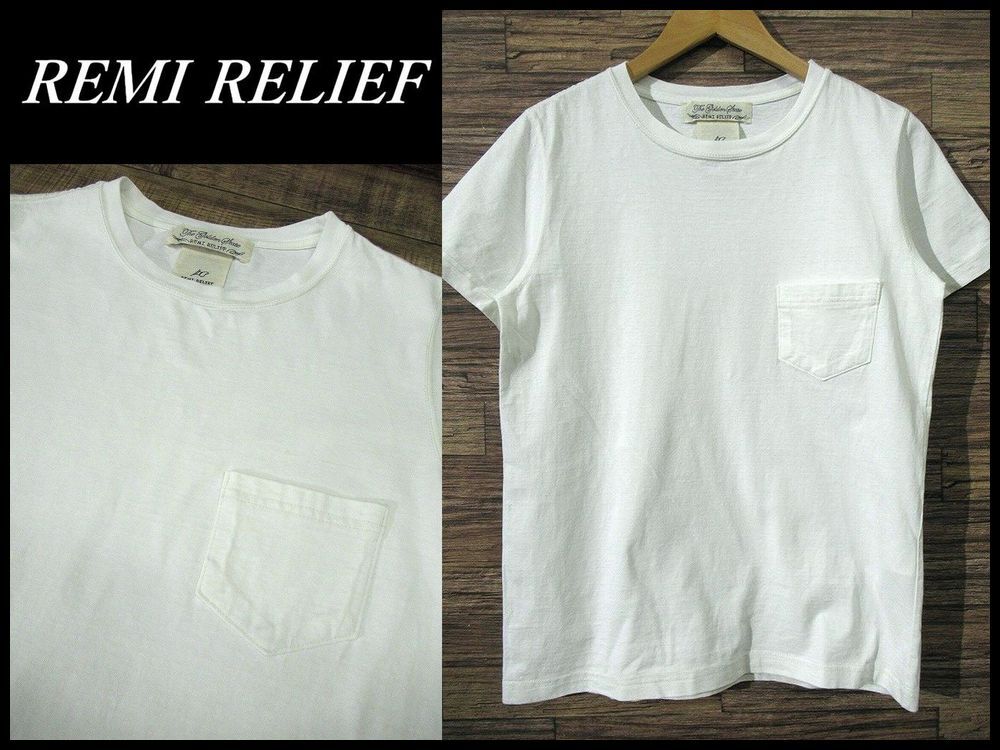 送料無料 G② 日本製 REMI RELIEF レミレリーフ 半袖 無地 プレーン 胸ポケット コットン Tシャツ カットソー トップス 白 S