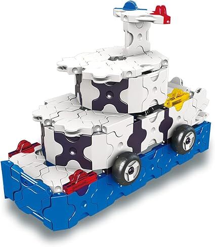 メインの「飛行機」のほか「牽引車」「バス」「旅客船」「ステップカー」の全5種類の乗り物に組み換えることができます。  ※全てのモデルを同時に作ることはできません