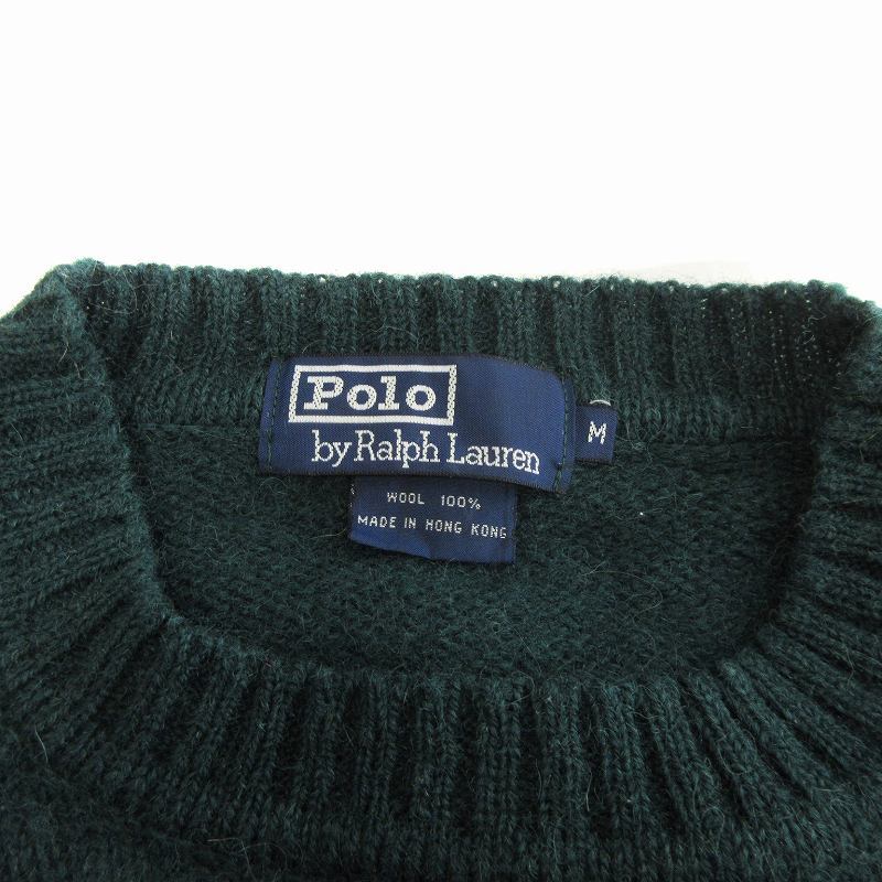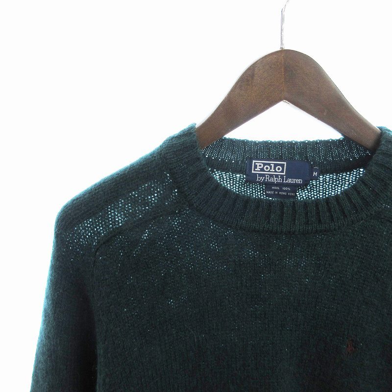 ポロ バイ ラルフローレン Polo by Ralph Lauren ニット セーター 長袖 ロゴ刺繍 ウール 緑 グリーン M ☆AA★ メンズ