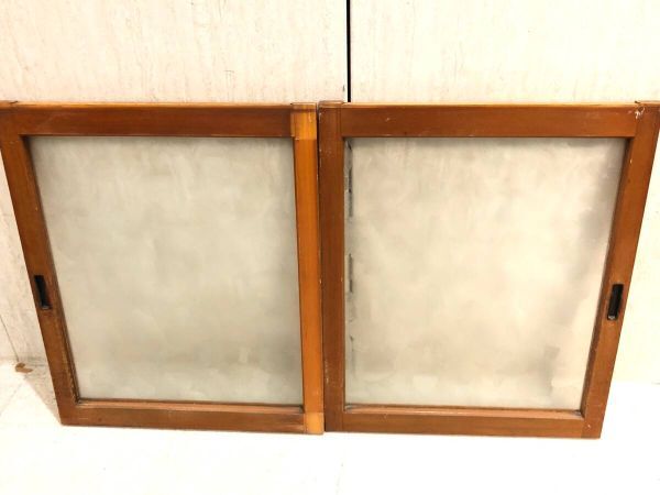 ■14276■■昭和レトロ アンティーク ガラス 引き戸 2枚 扉 建具 型板ガラス 模様入りガラス 古民家 古民具
