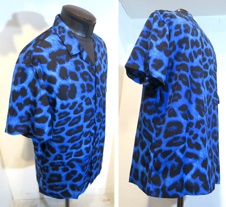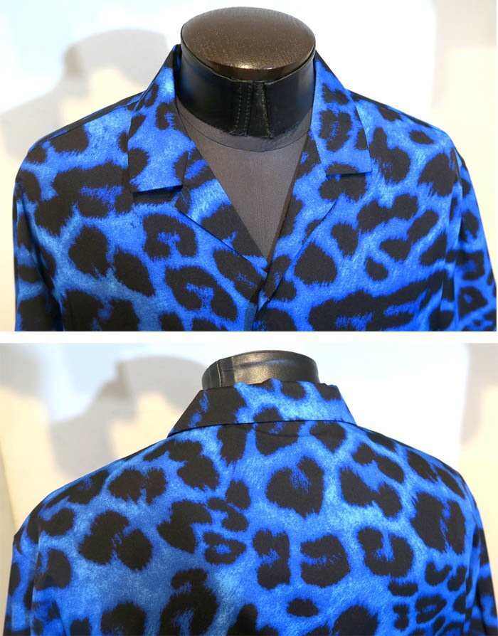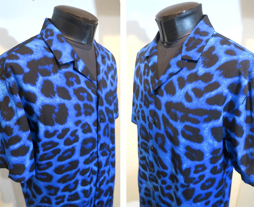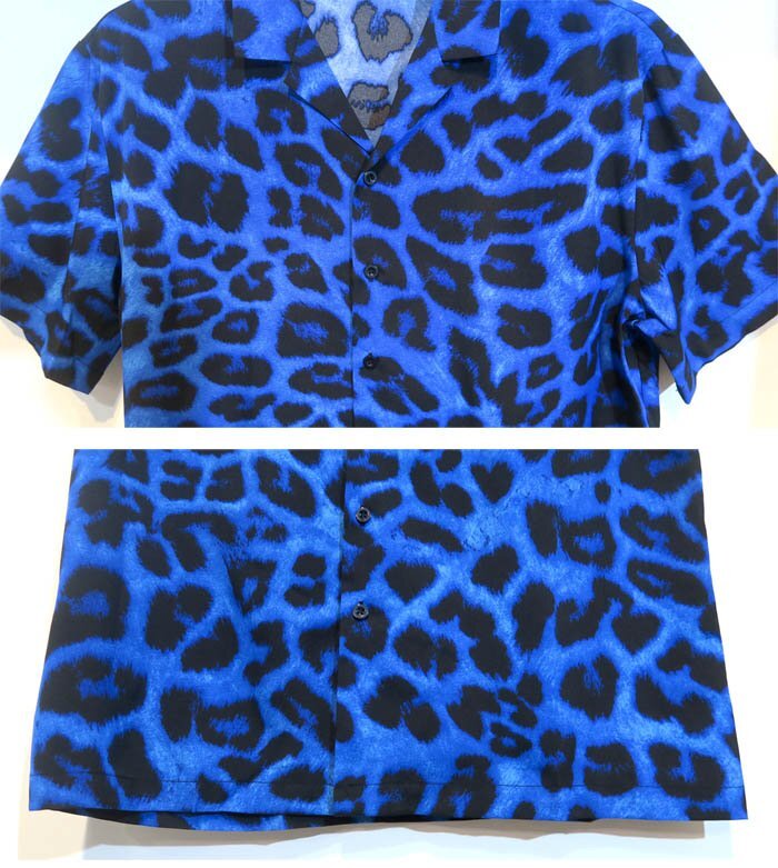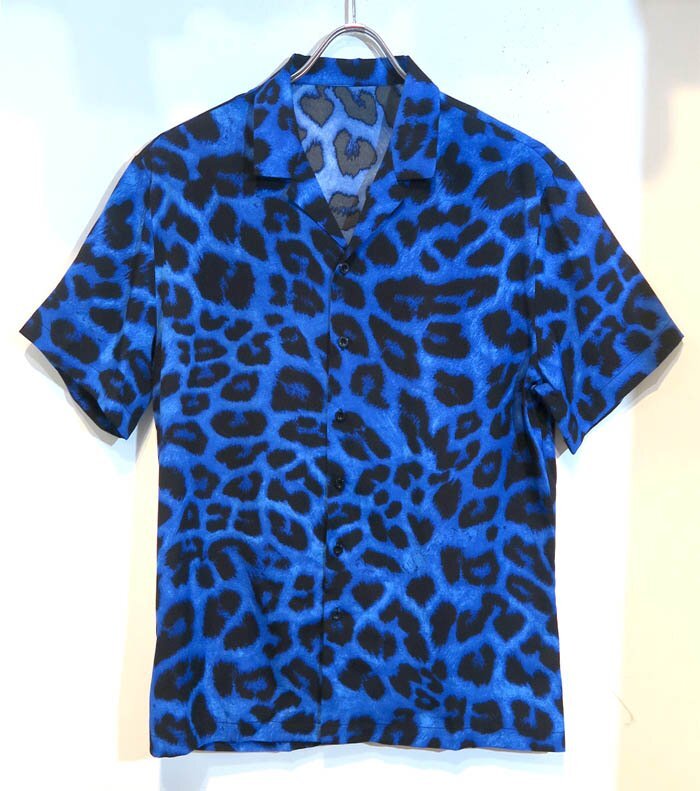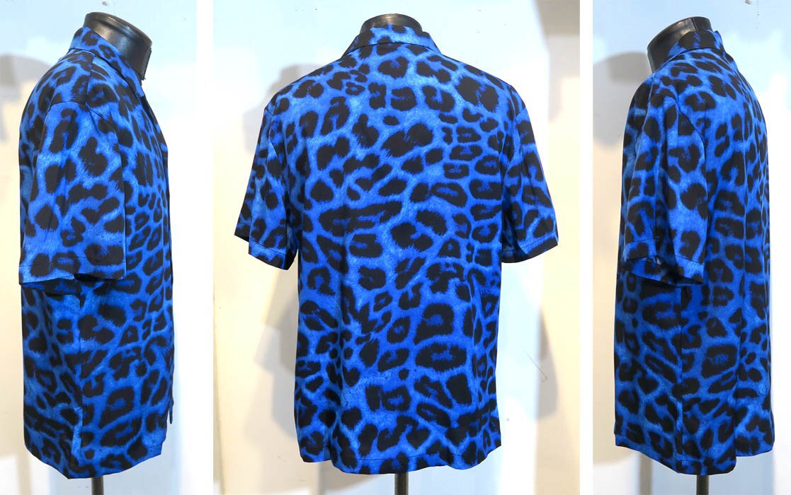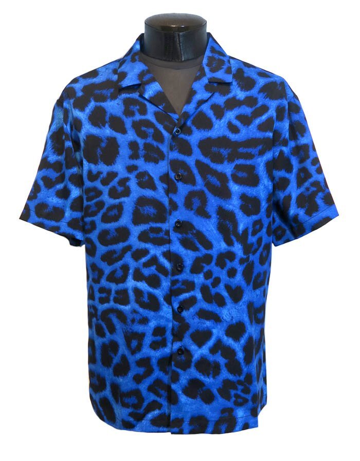 新品 Mサイズ 豹柄 シャツ オープンカラー 青 半袖 1260 ブルー メンズ 柄シャツ 開襟シャツ パンサー レオパード ヴィジュアル ロカビリー