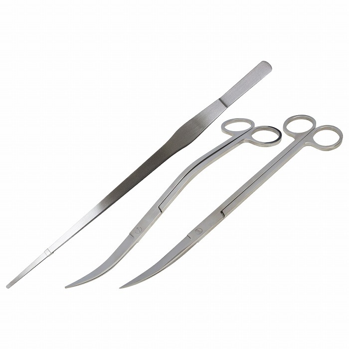 水草の植栽やトリミングに必要なピンセットとハサミのセットです。