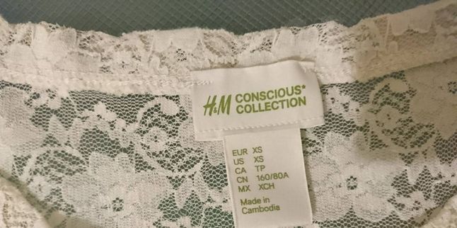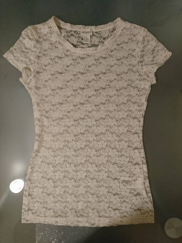 新古品★H&M レース T シャツ★ホワイト ベージュ 白 トップ 丸 エイチ usa xs s 34 8 レイヤード カットソー シースルー アメリカ カジ