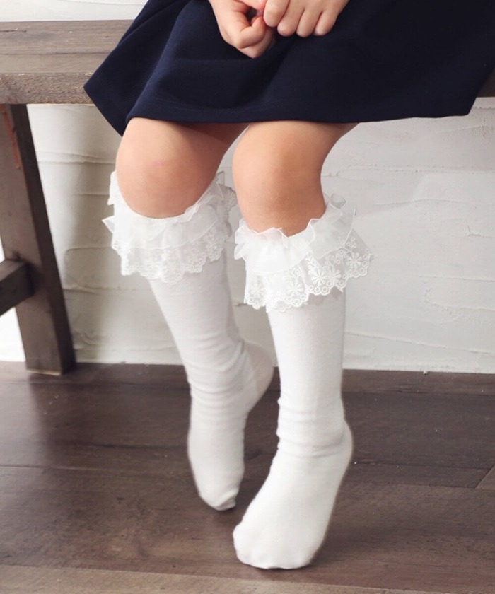 商品説明 | ・・■ブリーズハイソックスについて ・透明感のある爽やかなチュールとレースで、上品にまとめました!繊細なレディのエッセンスを効かせ、透明度の高いチュールや刺繍レースなどの ディテールに凝った一足。 ・シンプルなワンピースもどこか華やいでみえる、可憐な足元を演出します。 ・ナチュラルコーデに合わせて スタイル抜群上品カジュアルに!お受験や入学式、結婚式などのフォーマルなイベントや発表会やコンサートなどの格式高い場にぴったりです。 ・※滑り止めがはいっているのは14~16cmのみです ・チュールと刺繍レースがポイントのハイソックス |
