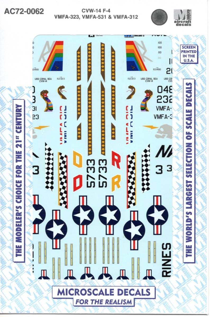 1/72 マイクロスケールデカール  AC72-0062 CVW-14 F-4 VMFA-323, VMFA-531 & VMFA-312