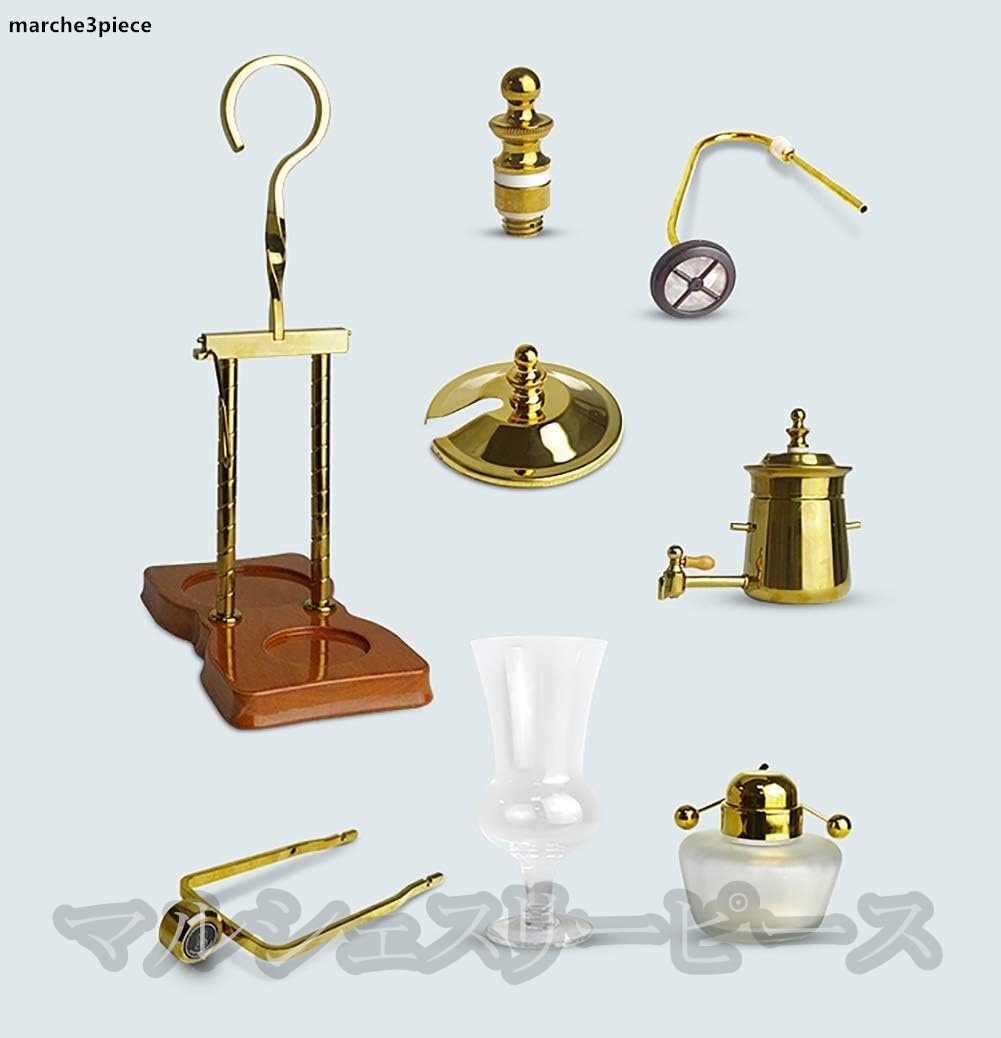 ▲エスプレッソの3/5カップに適したサイフォンコーヒーメーカー:美しい黄金の体を、耐熱ガラスなどの木製ベース、アルコールバーナーで。亜鉛メッキバランスシャフト、ハンドルと計量スプーン。