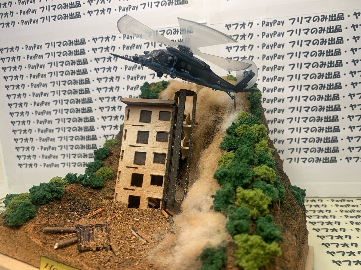 ★送料無料★ ジオラマ「PJ 航空救難団」★ヘリボーンコレクション9のUH-60J 航空自衛隊 洋上迷彩 使用★模型作りが高じて、エフトイズのヘリボーンコレクション9UH-60J 航空自衛隊とNゲージの建物を使い、ドラマのワンシーンを表現しました。★ジオラマは、プラケースと土台込みで幅約205ミリ、奥行約195ミリ、高さ約175ミリ、重量約760gになります。★私の作風をインスタグラムhttps://www.instagram.com/diostudio3にアップしていますので、お楽しみください。★