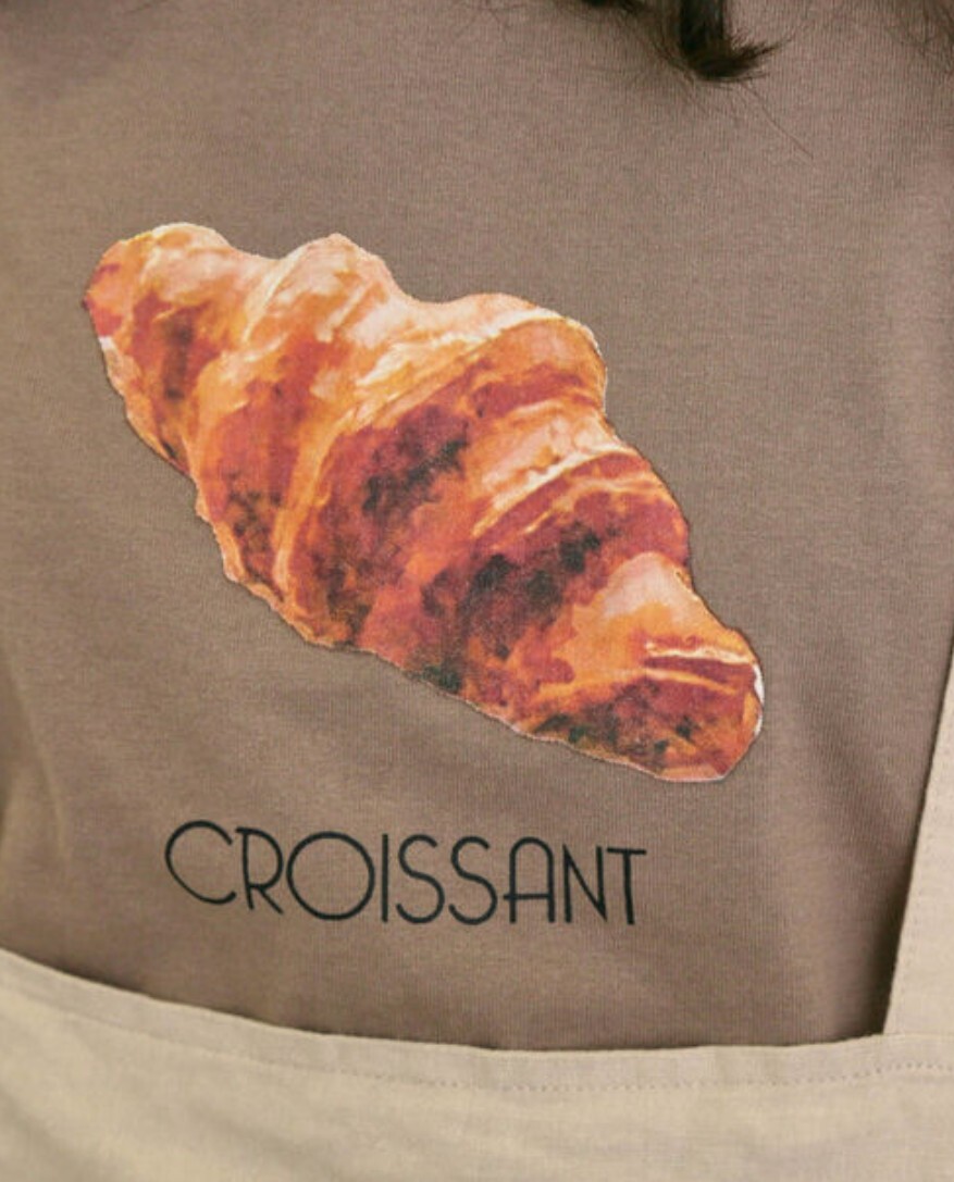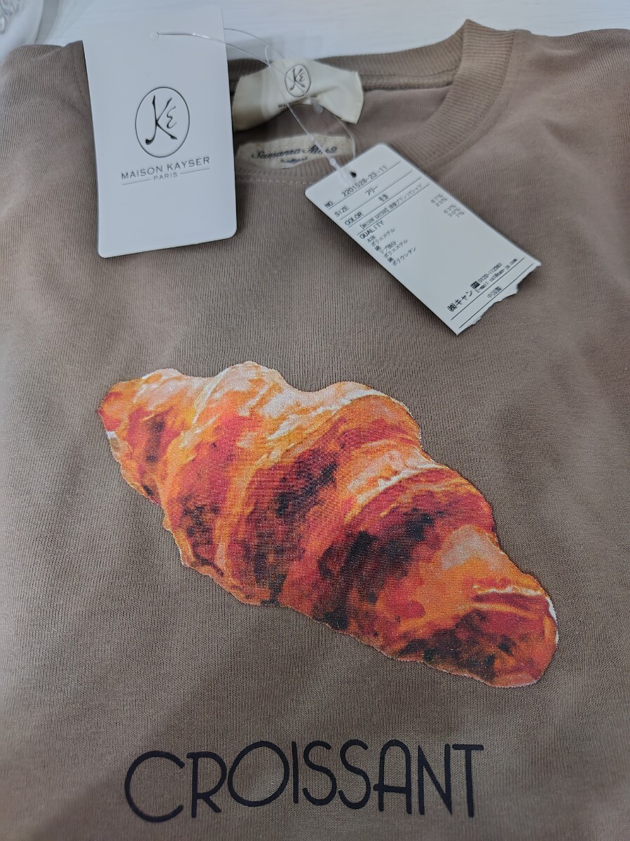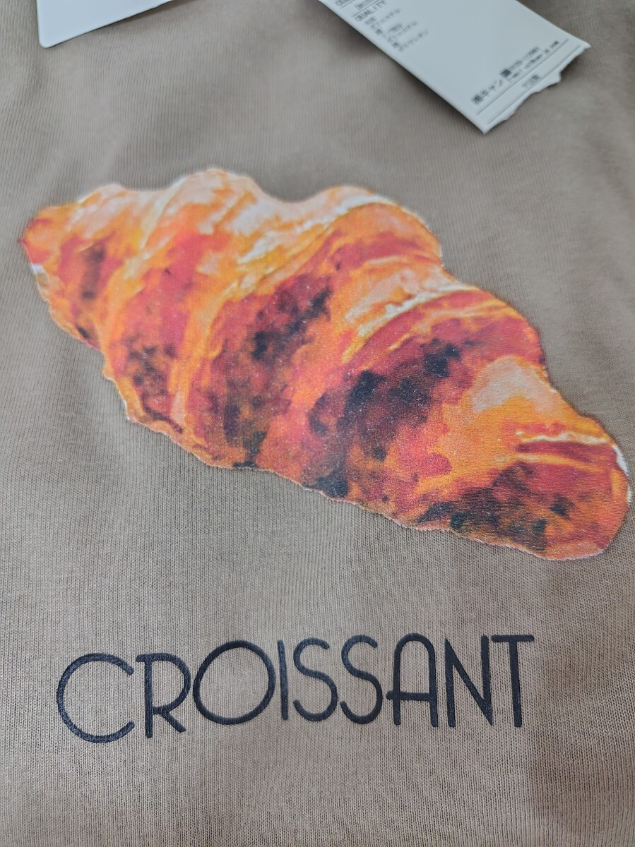 “クロワッサン”、“食パン”、“シューパリジャン”をカラーごとにそれぞれプリントしたインパクト大のTシャツ。
