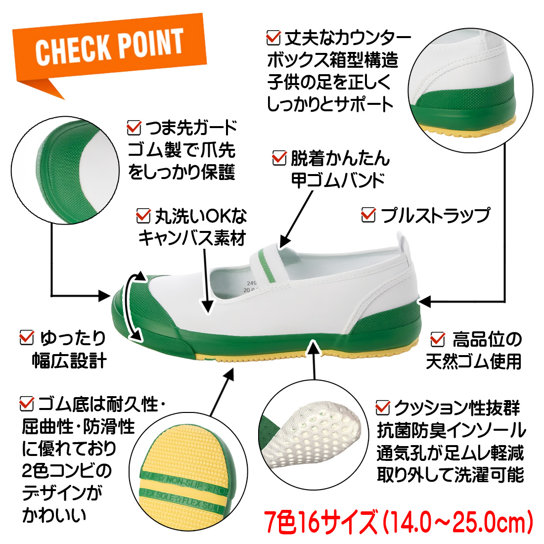 ワンランク上のゴム底キャンバス甲材の上履きです。