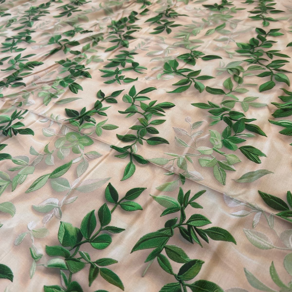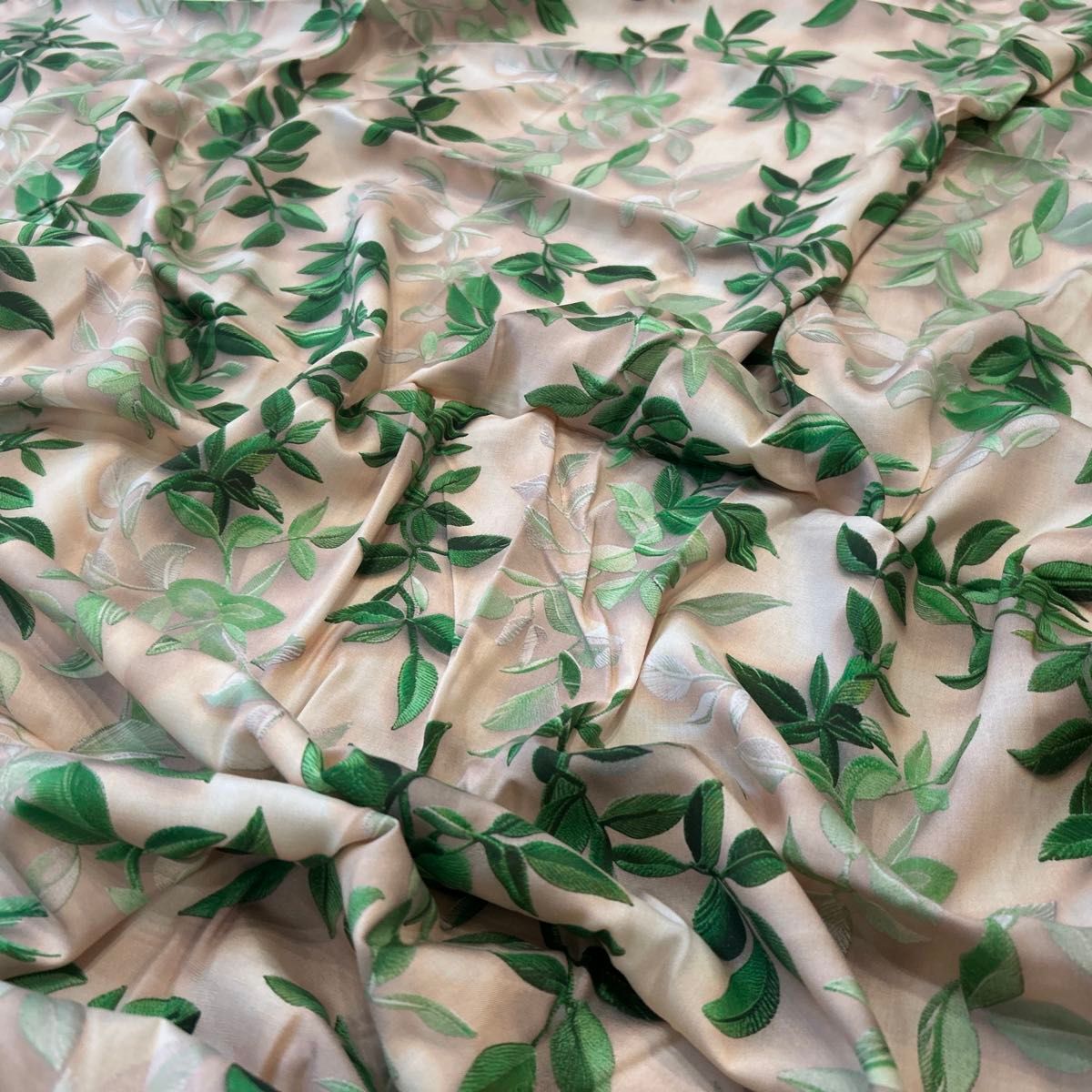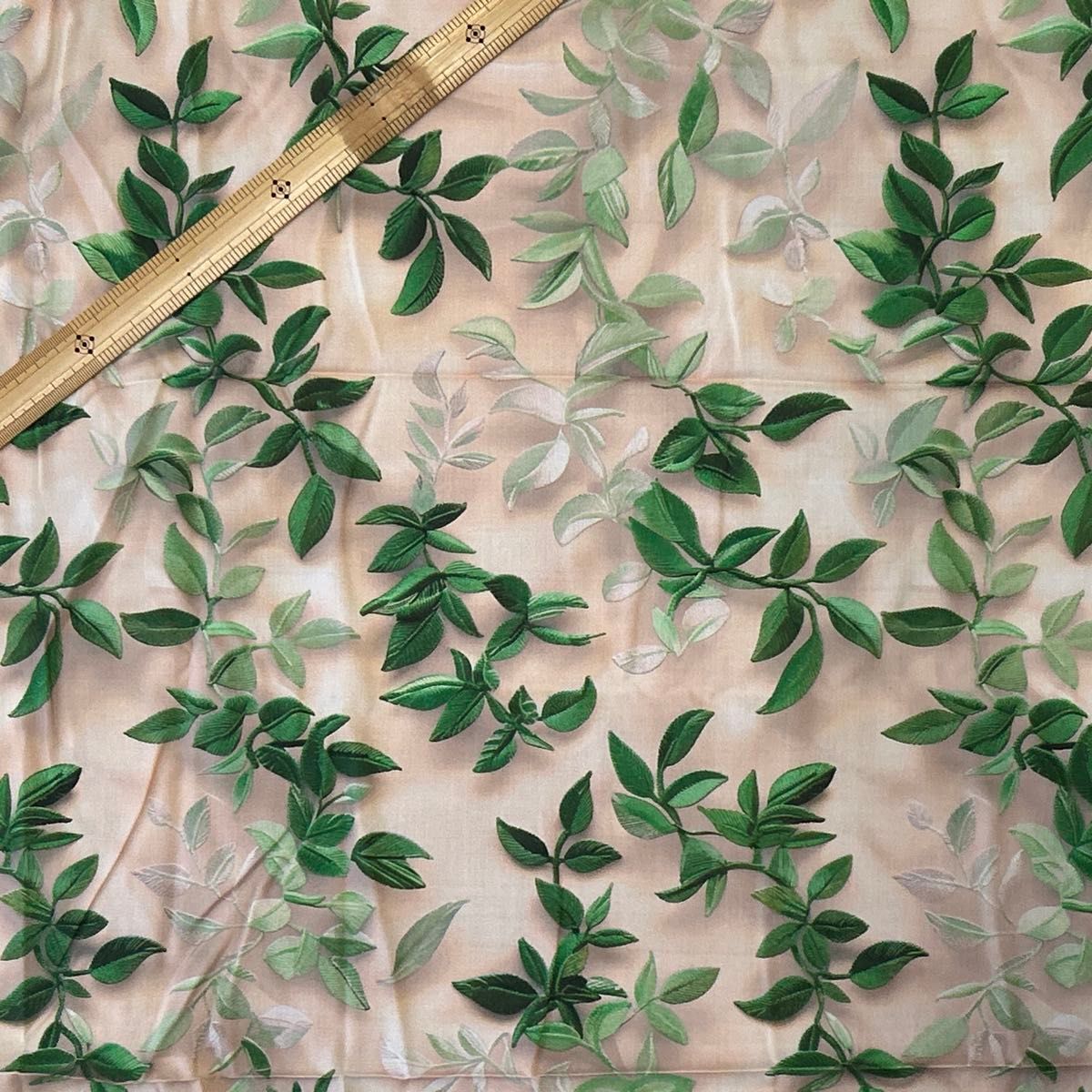 D73 3D立体プリント生地 花柄 緑葉 コットン100%生地
