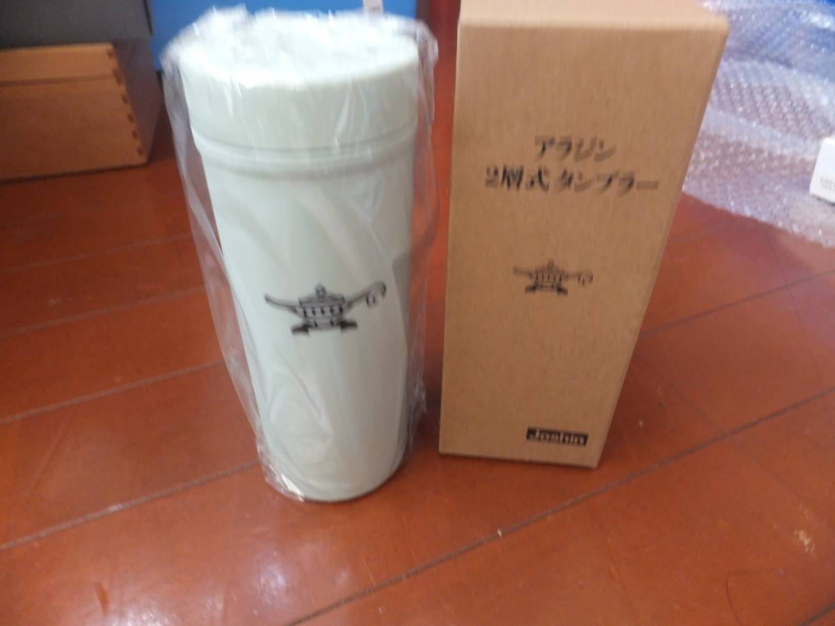 未使用品です。アラジン2層式タンブラーです。330mlです。箱は傷んでいます。自宅保管 品ですので神経質な方は御遠慮下さいね。ノークレームノーリターンでお願い致します。その他いろいろ出品していますので見て下さいね。