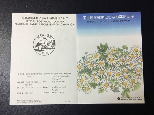 6643希少郵便文化振興協会 1994国土緑化運動記念切手解説書兵庫村岡初日印FDC初日記念カバー記念印鳥切手動物切手花切手使用済切手即決切手