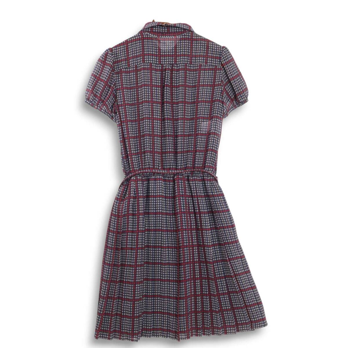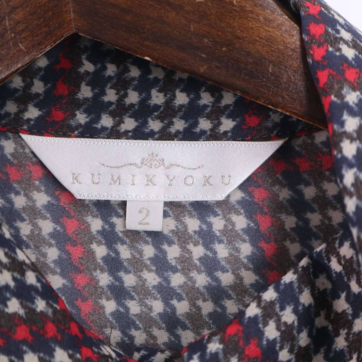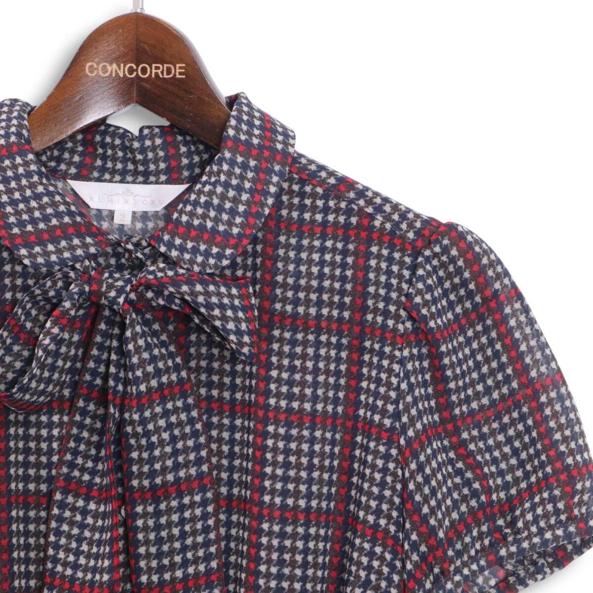 組曲 KUMIKYOKU 春夏★ 半袖 千鳥格子 チェック リボン パフスリーブ シャツ ワンピース Sz.2 レディース