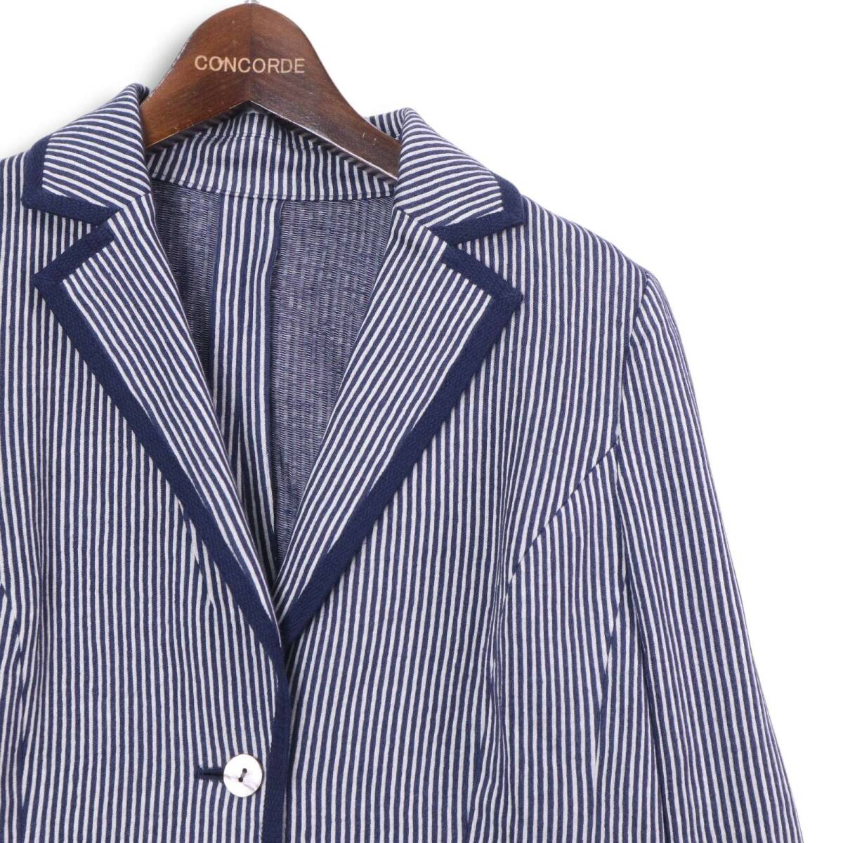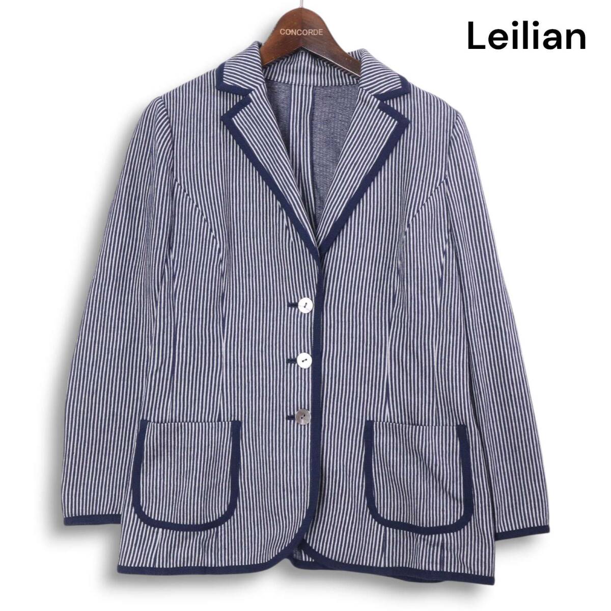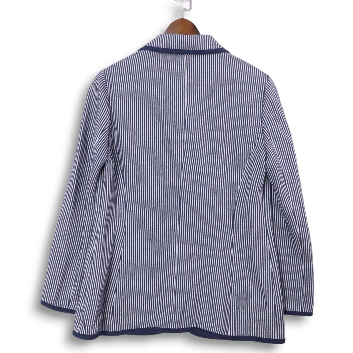 Leilian レリアン 春夏 ロロピアーナ★ 麻 リネン ストライプ パイピング ブレザー ジャケット Sz.9 レディース 日本製