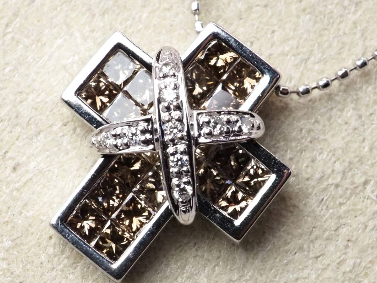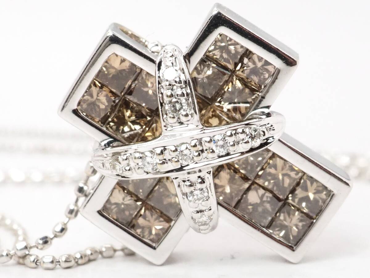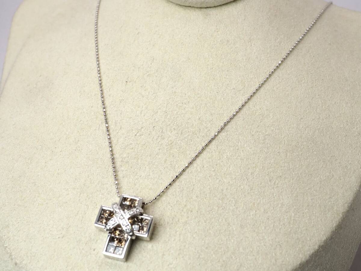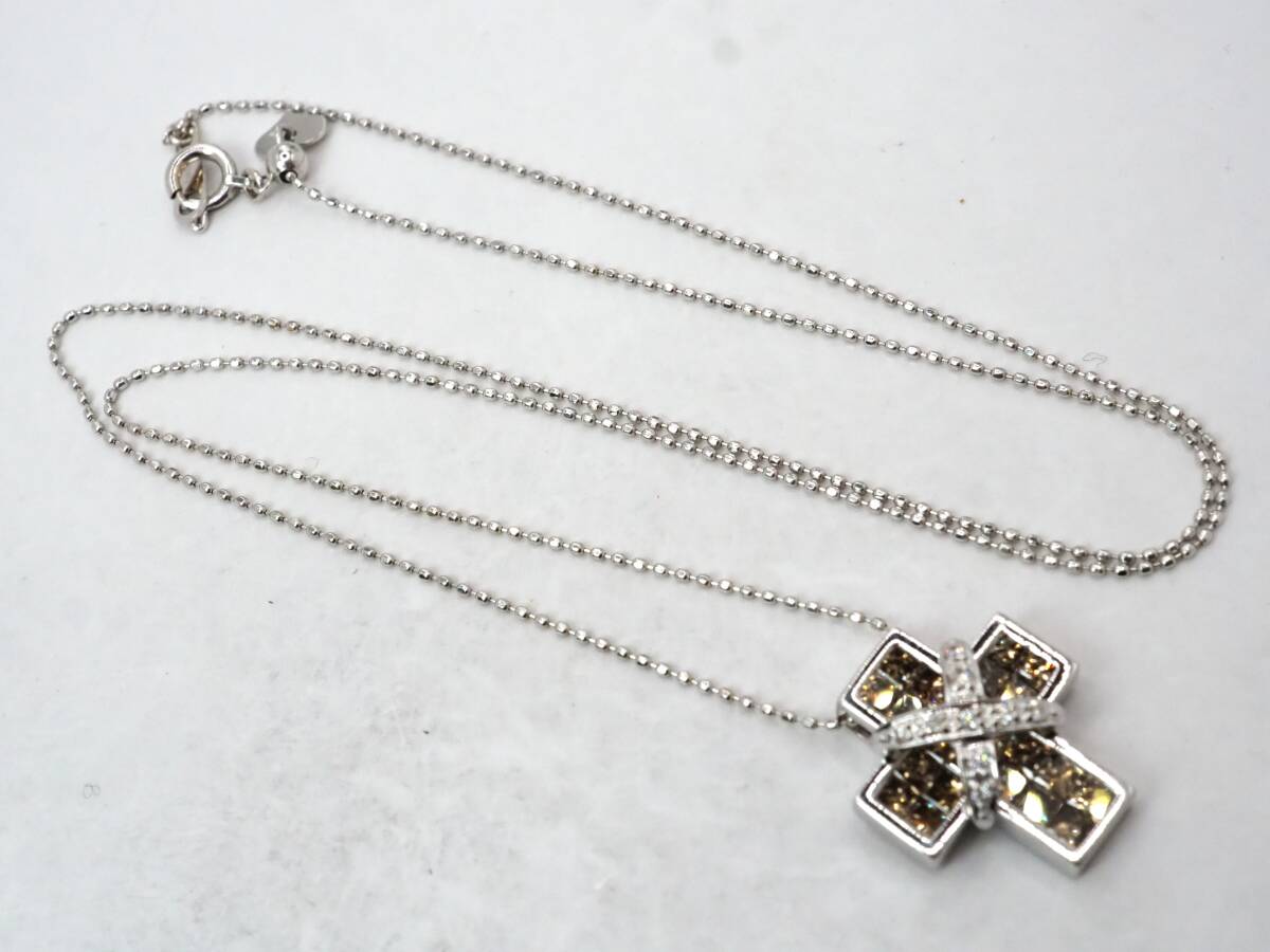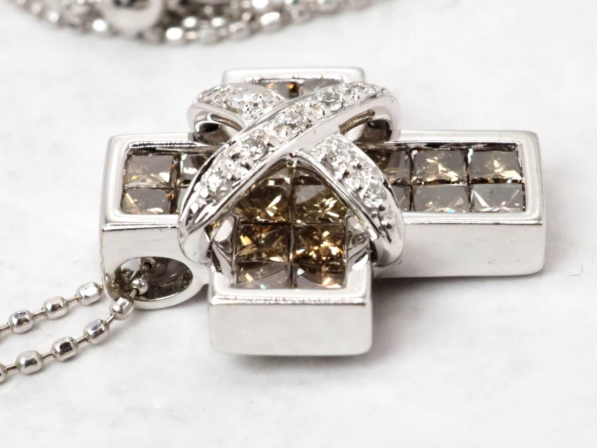K18WG 天然ブラウンダイヤモンド 天然クリアダイヤモンド 5.0g クロス 十字架 ネックレス