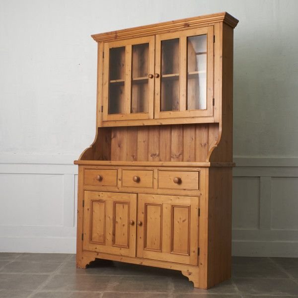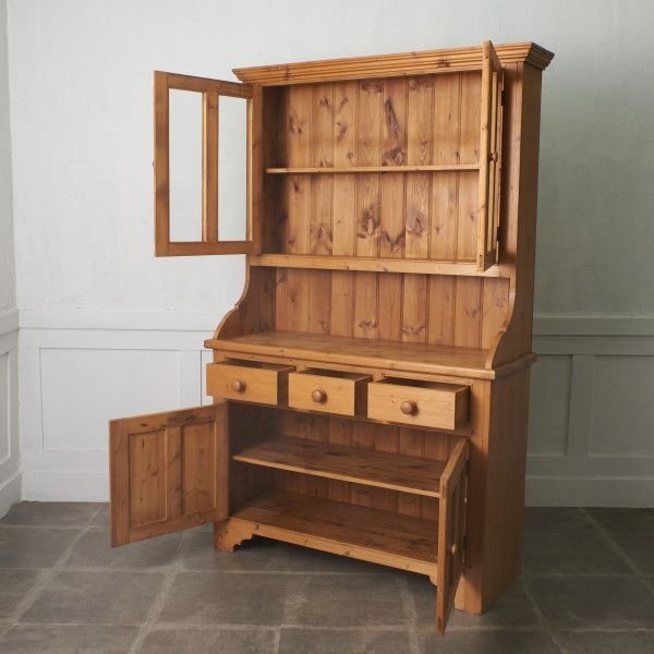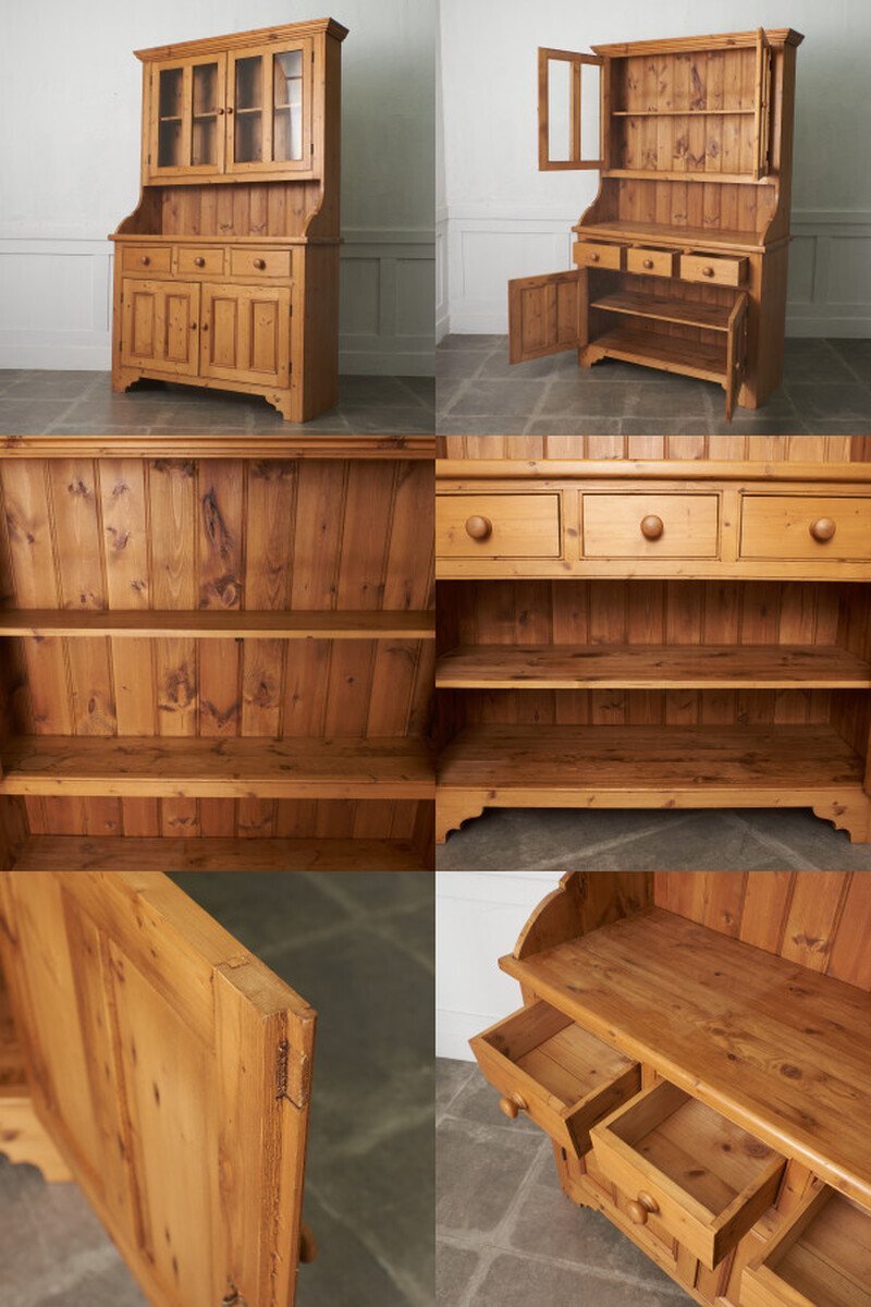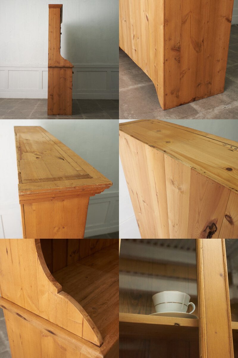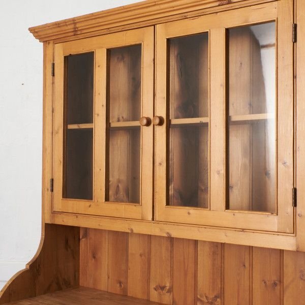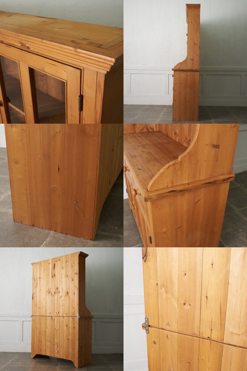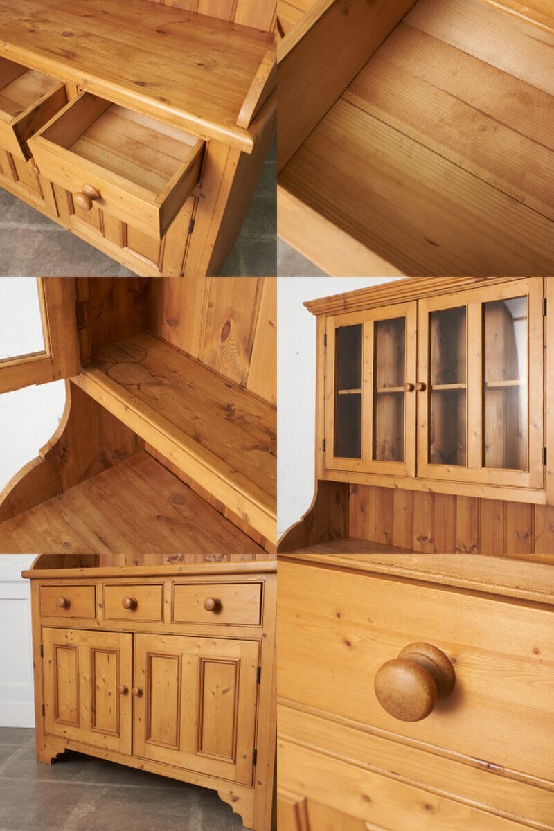 パイン無垢材をふんだんに使用し、温もりある素材感が魅力的なカップボード。ゆるい歪みがある揺れガラス扉が雰囲気のある風合いを醸し、カップボードとしてはもちろん、飾り棚やショーケースなどフレキシブルにお使い頂けます。