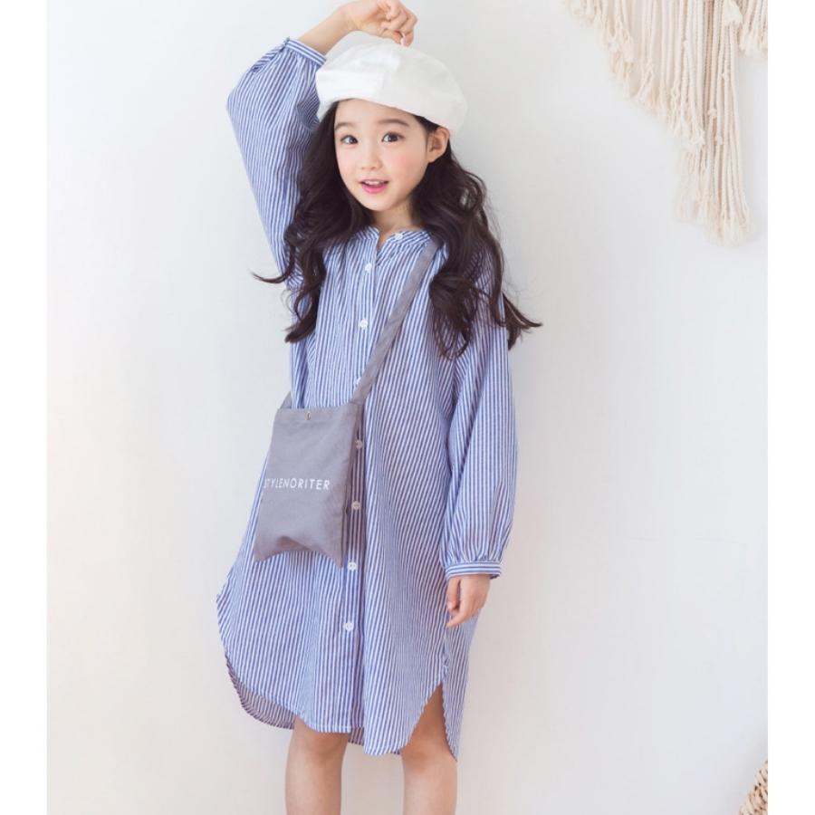 商品名 | 160cm ストライプ柄 ロングシャツ シャツワンピース 長袖 ミディアム丈 女の子 ガールズ 韓国子供服 |