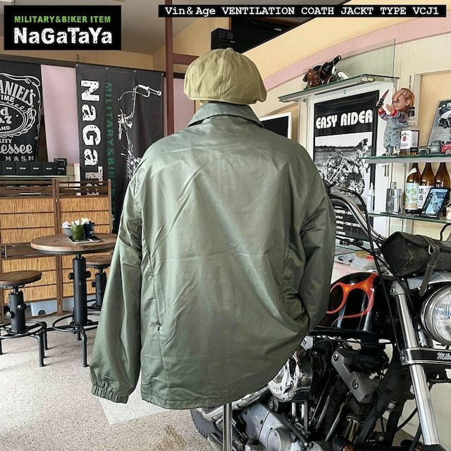Vin&Age ビンアンドエッジ TYPE VCJ1 ベンチレーション コーチジャケット オリーブグリーン Lサイズ ヘビーツイル素材仕様 BIKERウェア