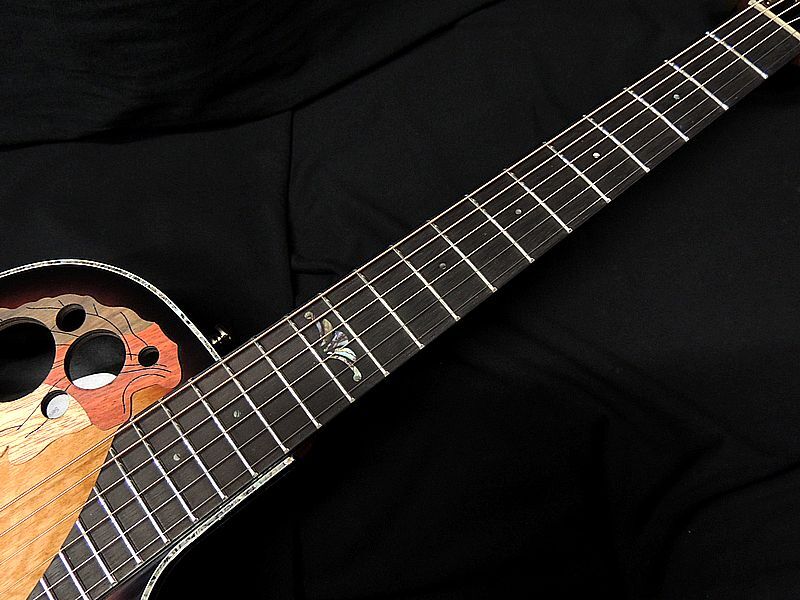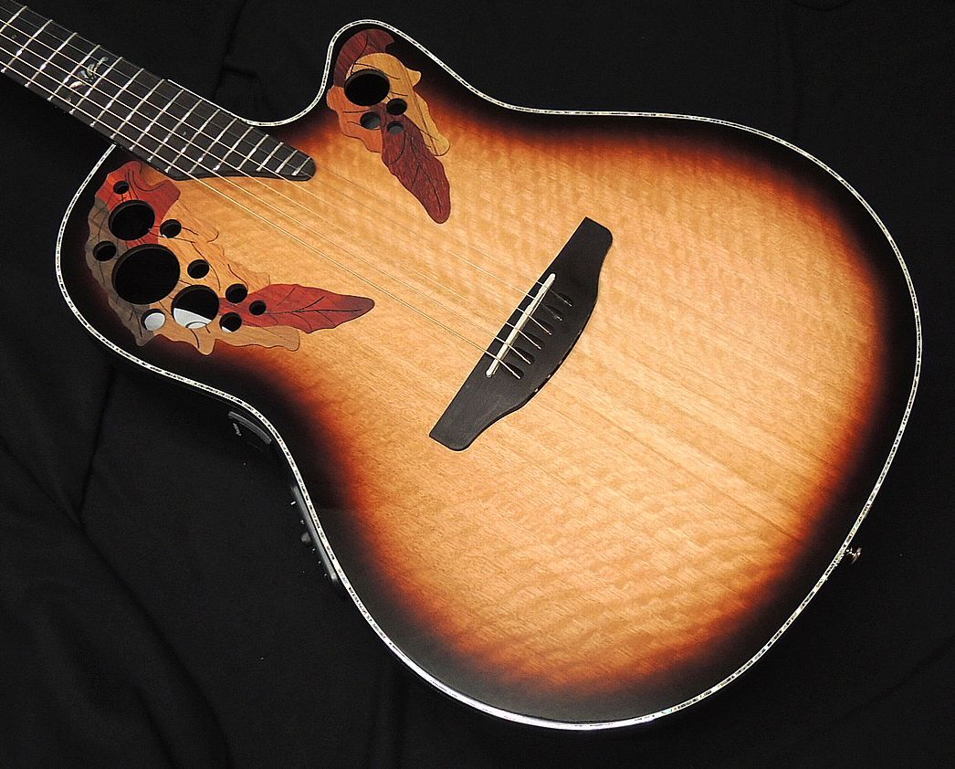 杢目の美しさと、オベーション独自のマルチサウンドホール設計によるクリアな高音とバランスの取れた低音のレスポンスで、ライブパフォーマンスに適したギターです。