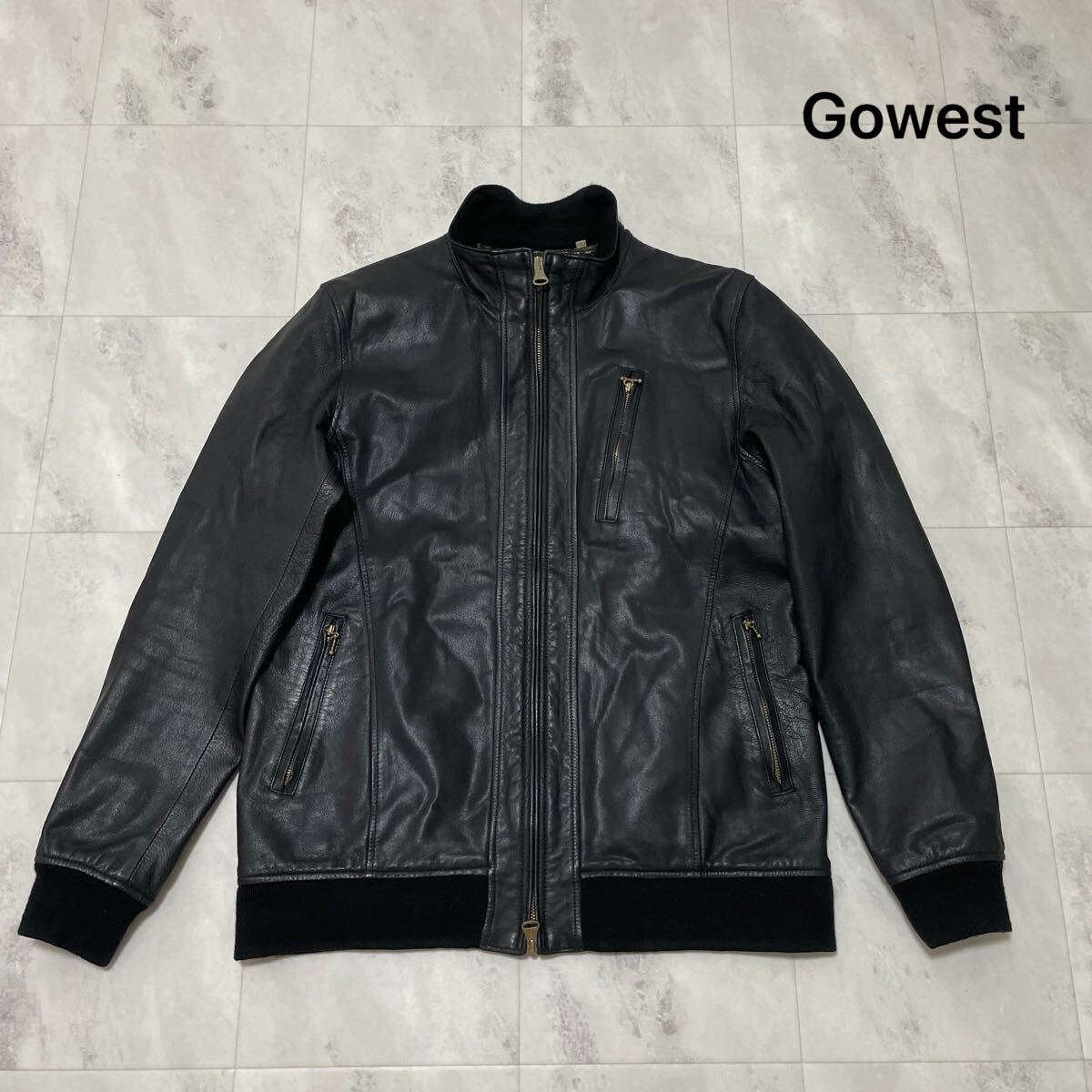Gowest ゴーウエスト レザージャケット 山羊 羊革 ダブルジップ ライダースジャケット A2 ブラック サイズ3 L フライトジャケット 玉SS3775