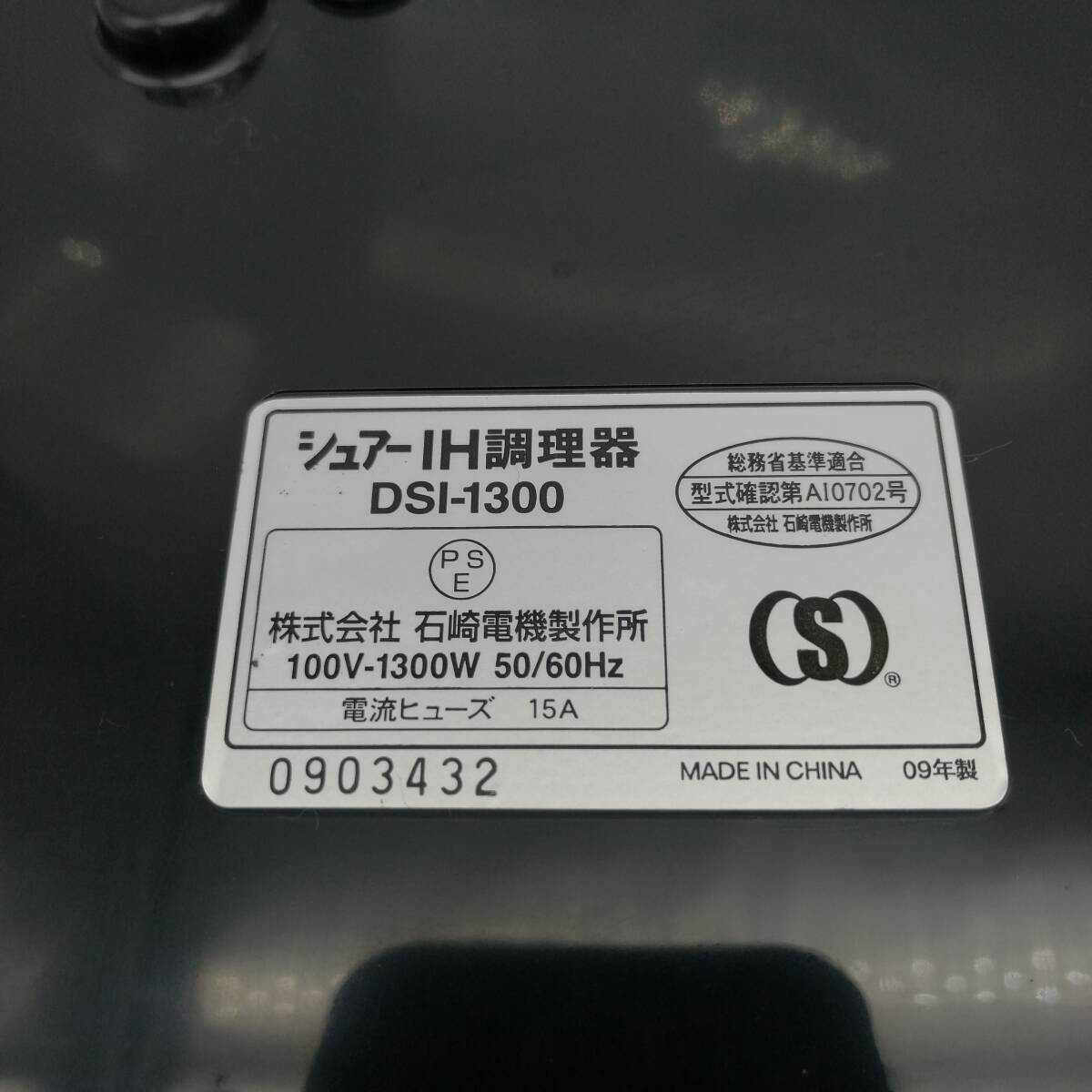 m1162 IH調理器 DSI-1300 石崎電機 使用頻度少なめ かんたん調理 火を使わず 中古 美品 | |||