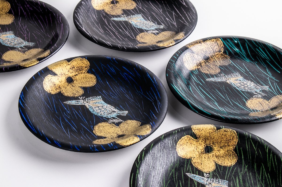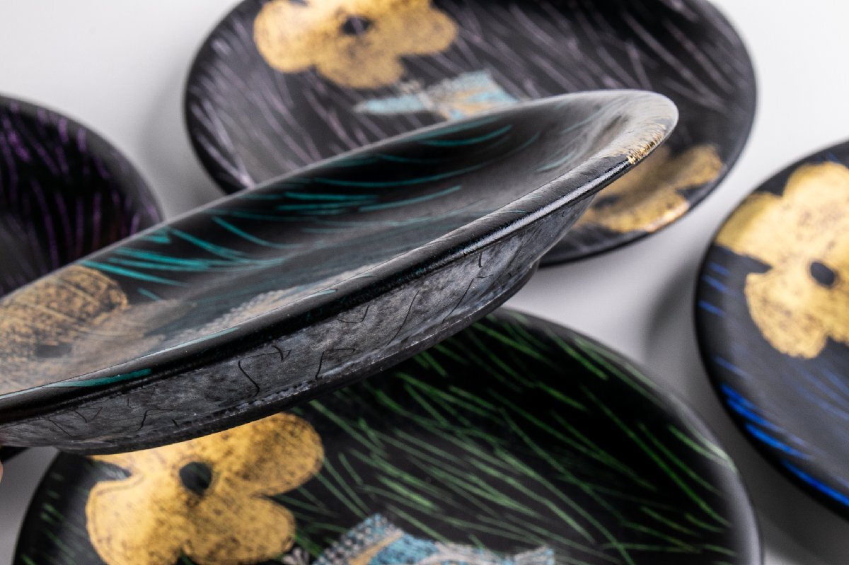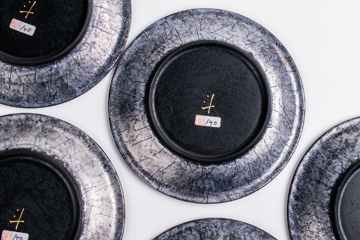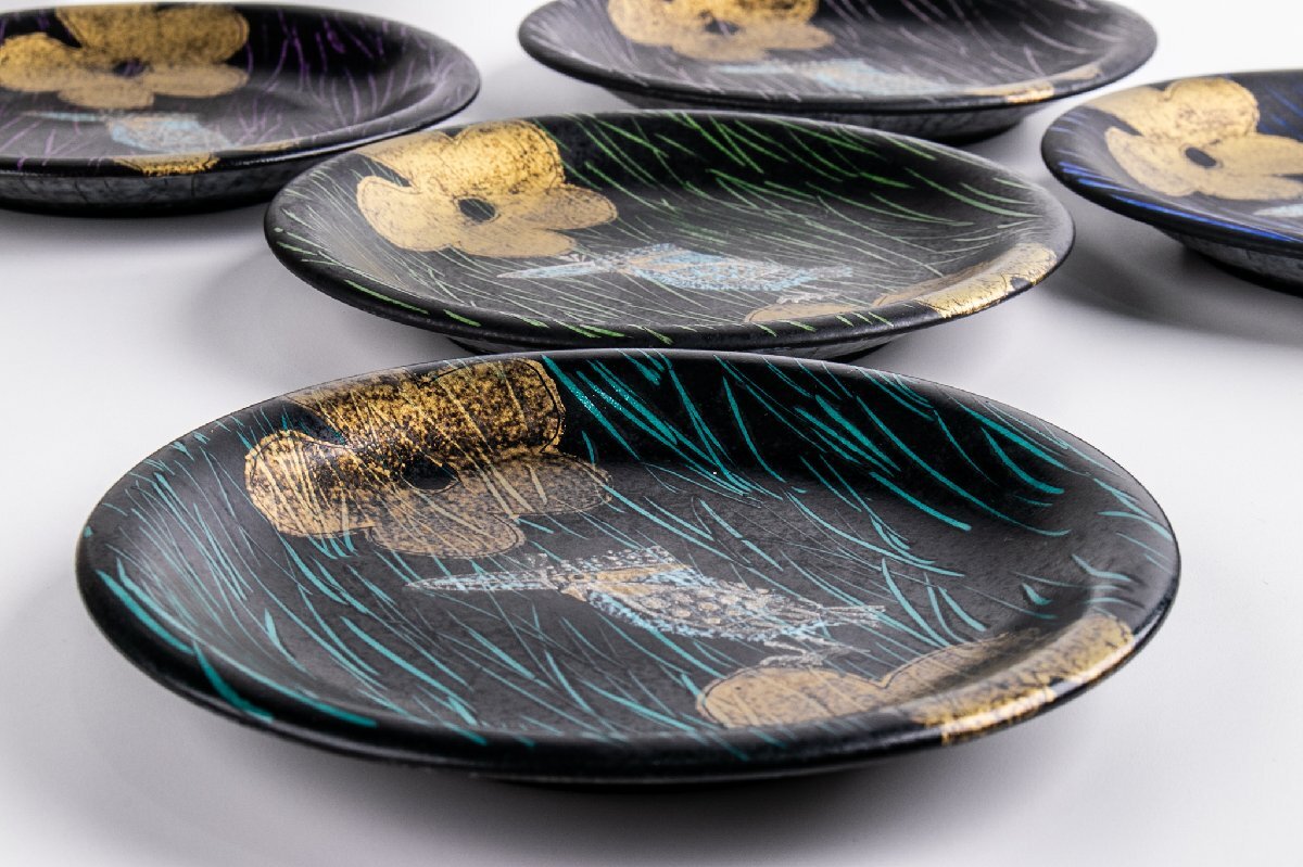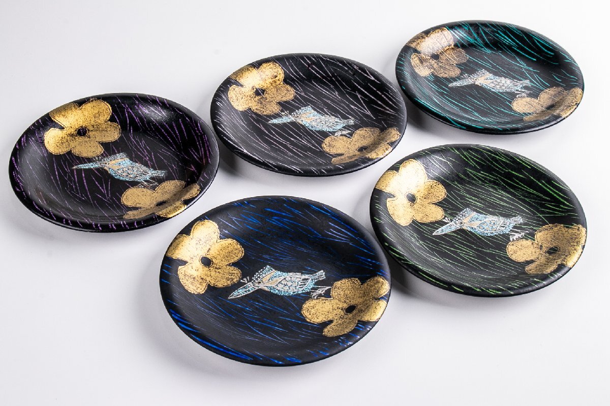 【うつわ】 伊藤北斗 釉刻色絵金銀彩 組皿 5客 共箱 E2120 古美術 骨董 古玩 唐物 茶道具 日本料理 懐石 料亭