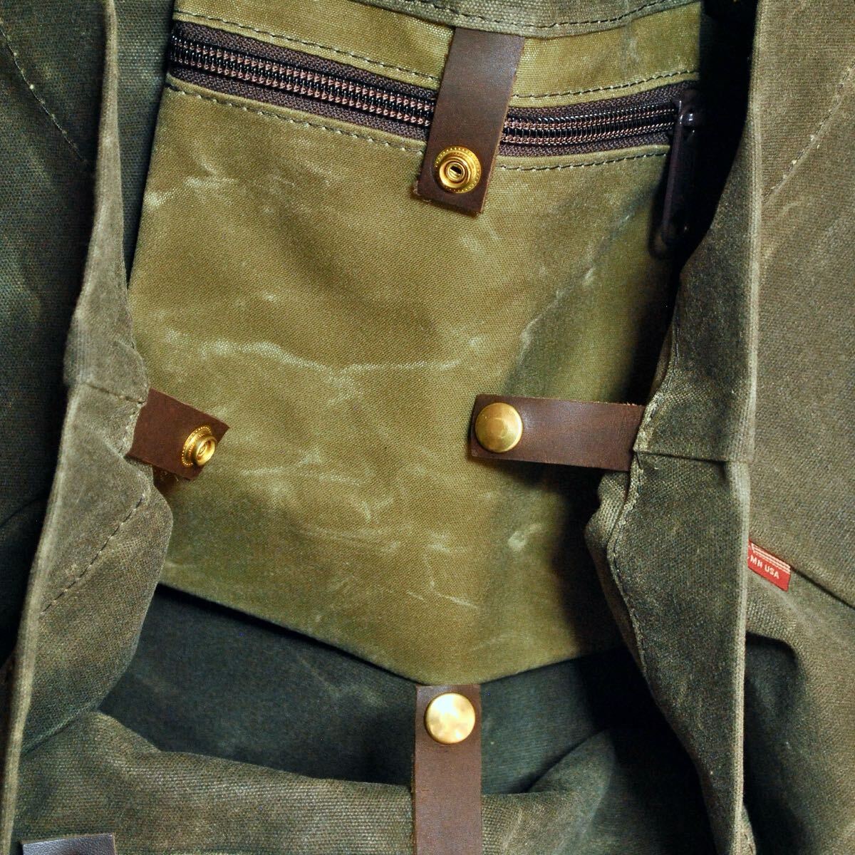 本体は、軽量、丈夫で、防水機能を備えたワックスドコットンキャンバス。