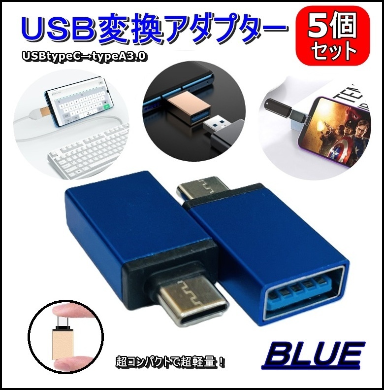 超コンパクトで超軽量!USBtypeCからtypeA3.0に変換できるアダプター【5個セット】です。
