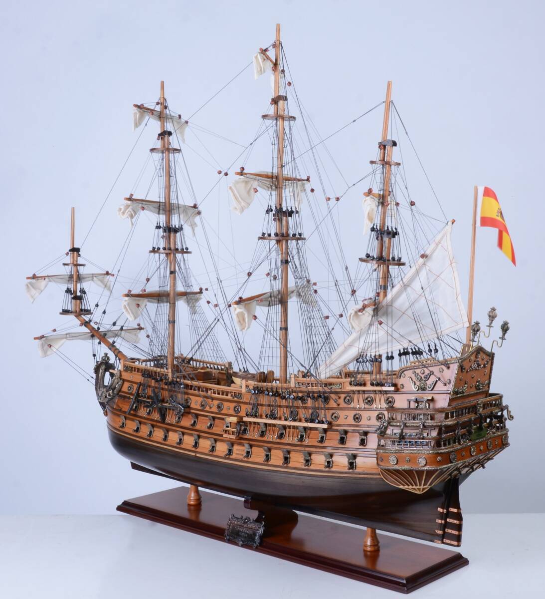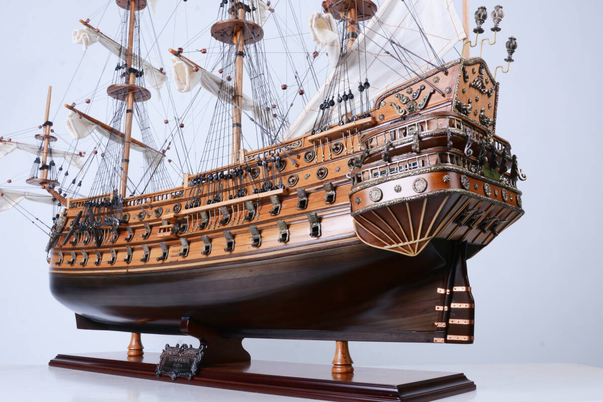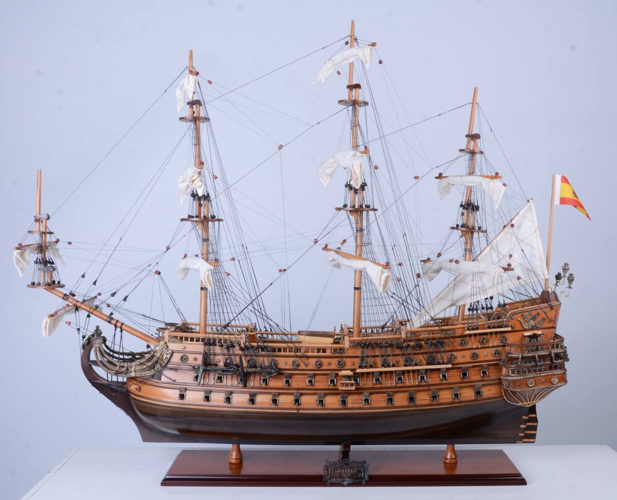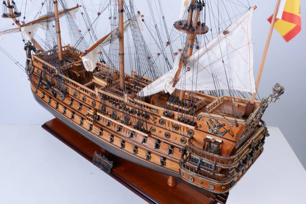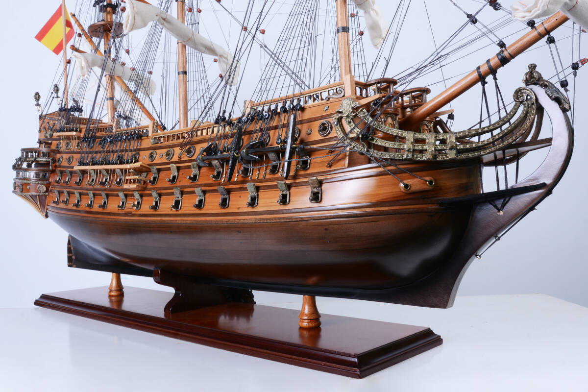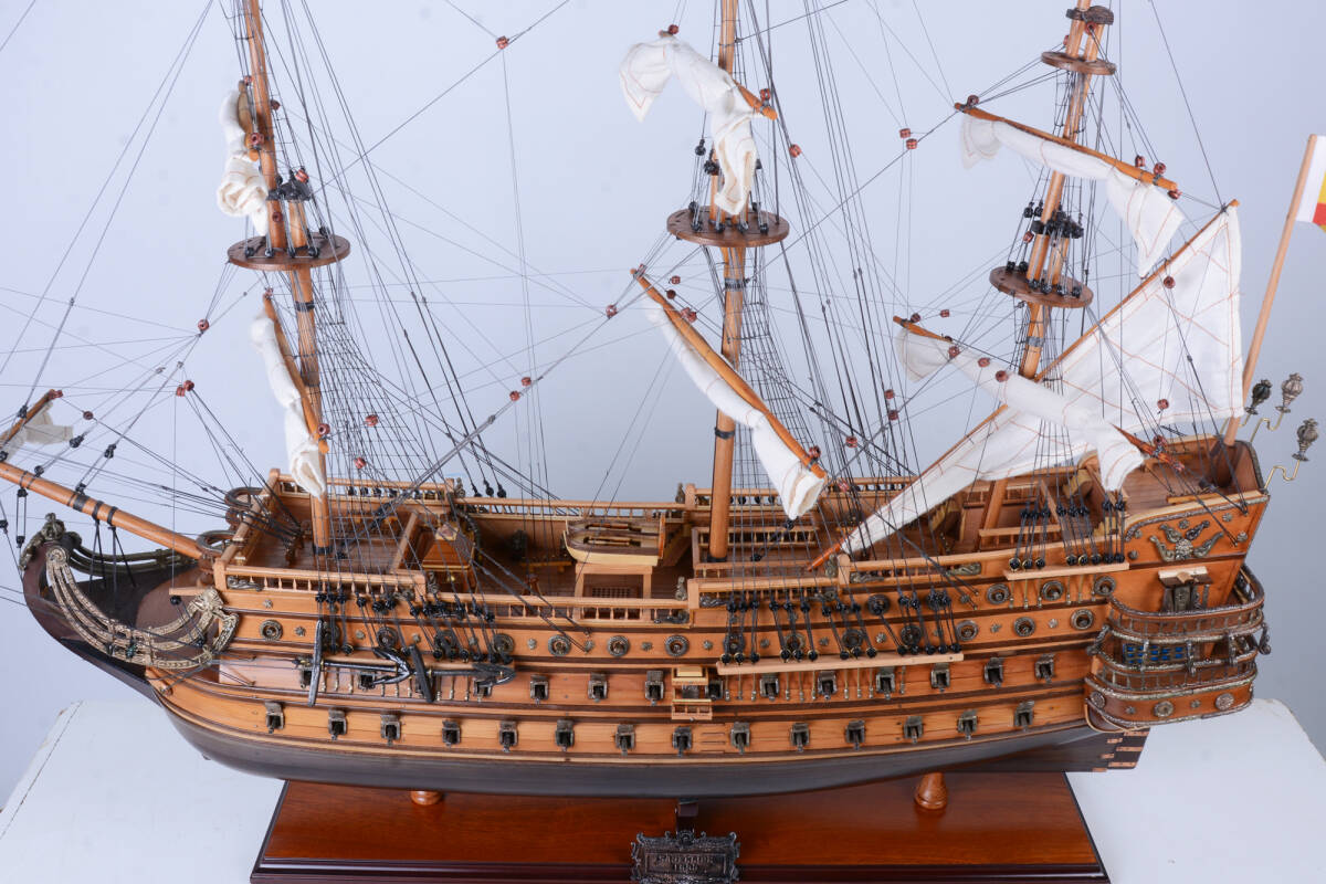 17世紀スペインの名高い戦艦「サン・フェリペ号」を忠実に再現した木製模型です。