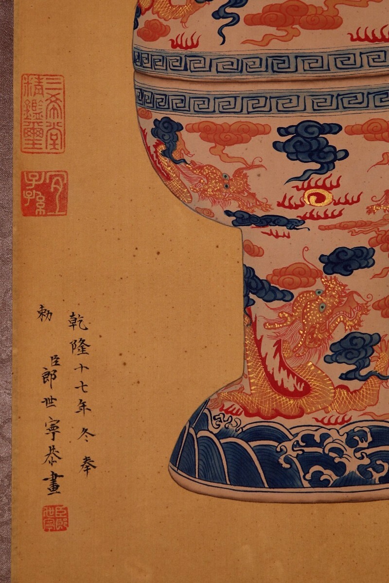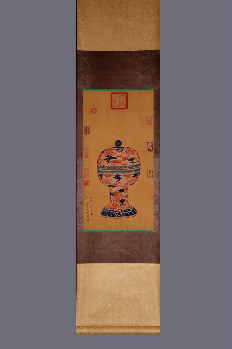 ・寸法約高さ:28cm 直径さ:16cm 絹本畫芯寸法約:32×63cm
