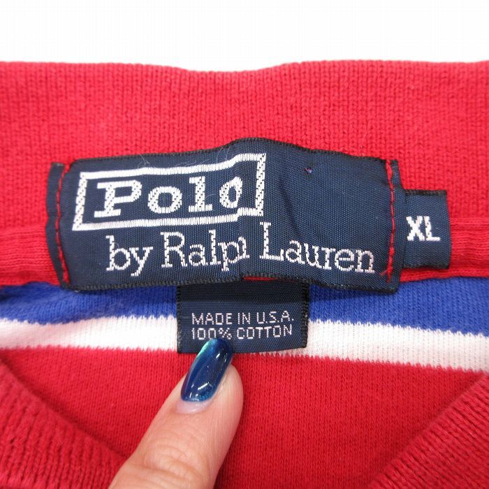 【商品名】 XL★古着 ラルフローレン 半袖 ブランド ポロ シャツ メンズ 90年代 90s ワンポイントロゴ 大きいサイズ コットン USA製 赤他【spe】
