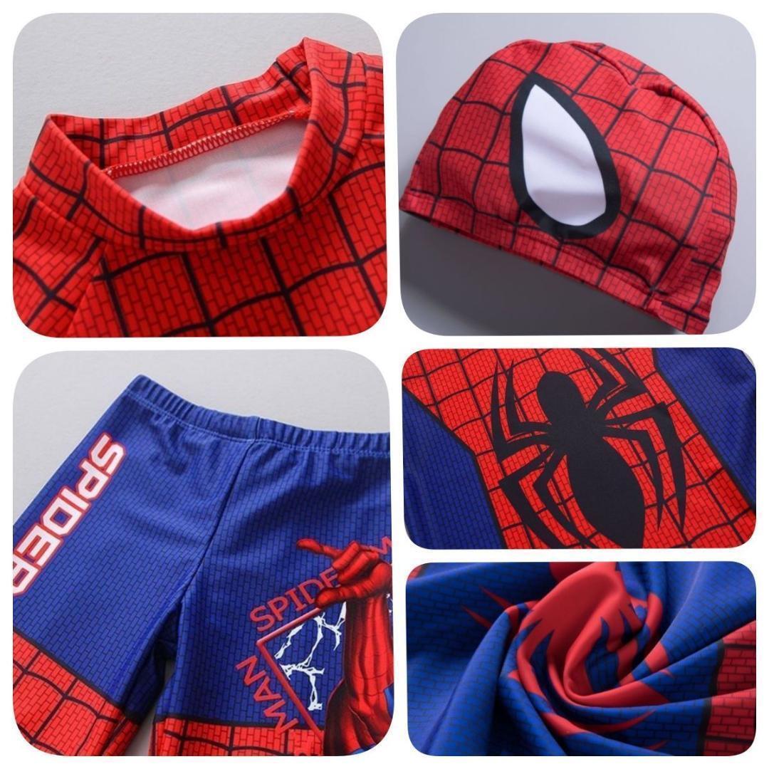スパイダーマン 水着 男の子 キッズ 子供用 上下セット 帽子付き マーベル ヒーロー プール 海水浴 温泉 スイミング 夏休み ビーチウェア スイムウェア