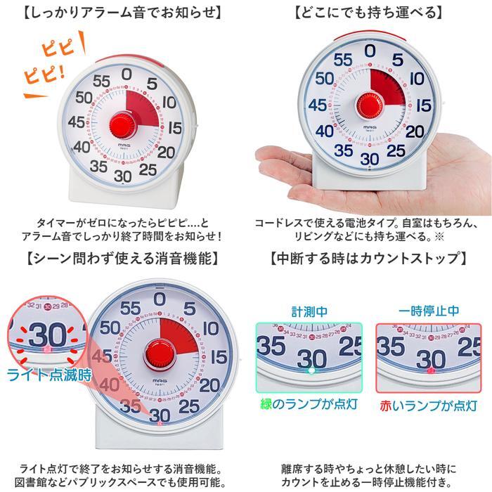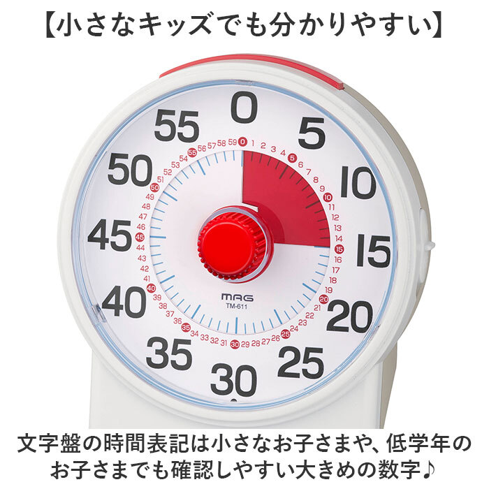 商品説明 | ・・【勉強時間のお供にオススメ♪】 ・あと何分?がひとめで分かる。小さなお子さまでも読みやすい知育タイマー 計ってよめーる。 ・【小さなキッズでも分かりやすい】 ・文字盤の時間表記は小さなお子さまや、低学年のお子さまでも確認しやすい大きめの数字♪ ・【残り時間がひとめで分かる】 ・時間表示のフィルムで、赤く表示されるのでパッと見ただけで残り時間の確認ができる ・【日頃の勉強からテスト対策にも】 ・最大60分まで対応。日頃の宿題からテスト勉強、入試対策にもオススメ♪ ・【スマホを使わず集中力UP】 ・スマホを使わずに経過時間が分かるので集中力UP効果もアリ。 ・【時間管理で段取り力も身につく】 ・時間を可視化できるので、勉強の他、丸付けや見返しの時間などの段取り力も自然に身につく。 ・【しっかりアラーム音でお知らせ】 ・タイマーがゼロになったらピピピ....とアラーム音でしっかり終了時間をお知らせ! ・【どこにでも持ち運べる】 ・コードレスで使える電池タイプ。自室はもちろん、リビングなどにも持ち運べる。※ ・【シーン問わず使える消音機能】 ・ライト点灯で終了をお知らせする消音機能。図書館などパブリックスペースでも使用可能。 ・【中断する時はカウントストップ】 ・離席する時やちょっと休憩したい時にカウントを止める一時停止機能付き。 ・【やりすぎ対策にもオススメ】 ・勉強の他、ゲームや動画などのやりすぎ防止にも役立つ☆ ・【注意事項】 ・※単三乾電池×2使用(電池別売り) |