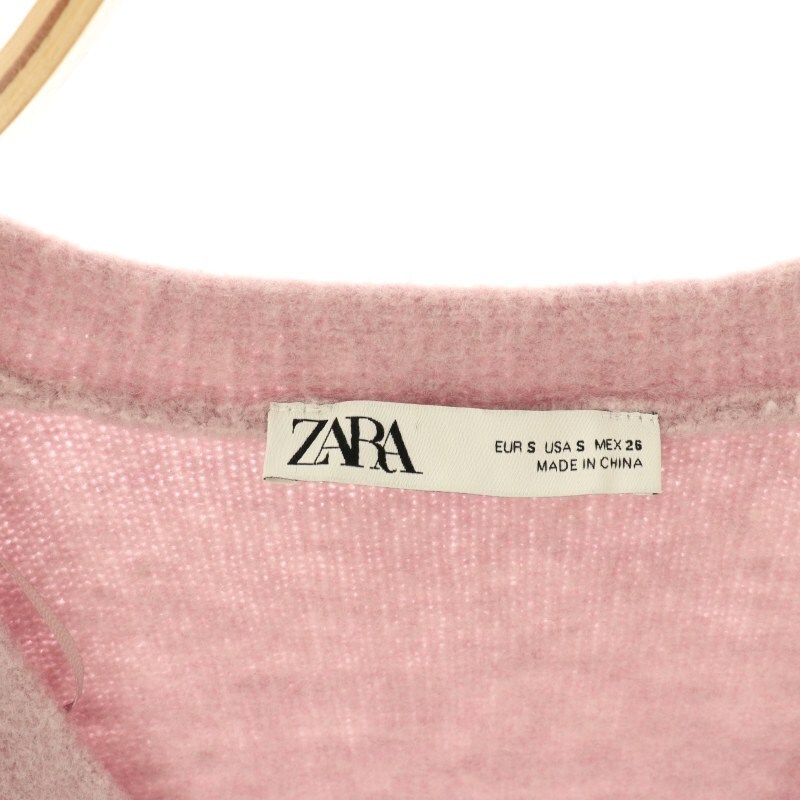 ザラ ZARA Vネックカーディガン ニット S スモークピンク /ES ■OS レディース