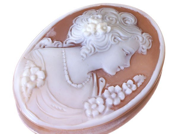 綺麗な女性と花の彫刻が素敵な高級シェルカメオルースを激安価格で特別大放出致します!