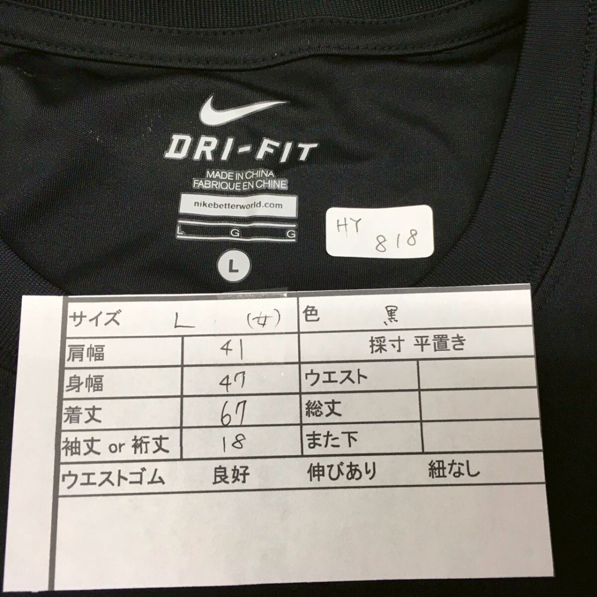 HY818 ナイキ ドライフィット 半袖Tシャツ 黒 レディース Lサイズ ELITE
