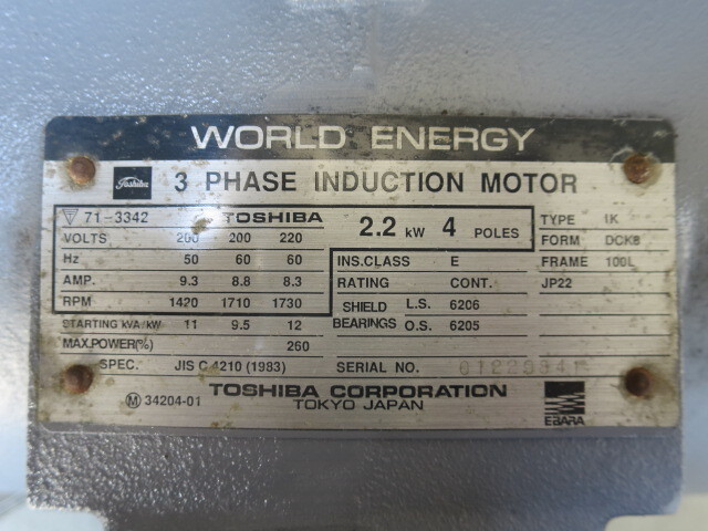 TOSHIBA 2.2KW・200V/4POLE 整備品です。
