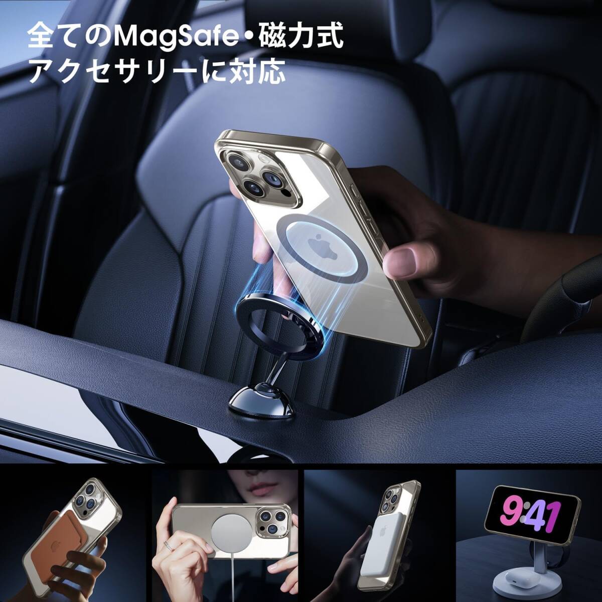 【並外れた磁力】Alphex独自の磁気リングと36個のN52三角形磁石の配置により、こちらのケースは2855.19gfの印象的な磁力を誇っています。この優れた強さにより、充電器からカーマウントまで、さまざまな磁気アクセサリーとのシームレスな互換性を実現しています。故にアクセサリーがしっかりと固定され、接続が安定してい。使用中にアクセサリーが外れる心配がありません。充電やカーナビの使用時にも安定性を保ち、スムーズな操作を可能にします。充電中のiPhone15ProMaxを横向きに置くと、便利な「スタンバイ」新機能も体験できます。さらに、アクセサリーの取り付けや取り外しが簡単でスムーズです。