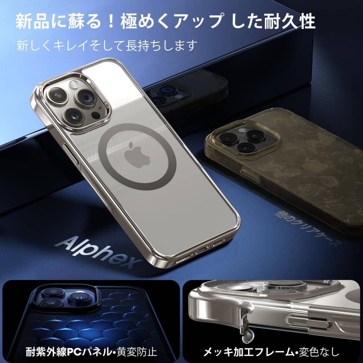 【本体を再現・Magsafe対応】Alphex iPhone 15 Pro 用 ケース iPhone純正色 マグネット搭載 黄変なし 米軍MIL規格 耐衝撃 ストラップホール付き マグセーフ対応 iphone15pro用 ケース ナチュラルチタニウム専用