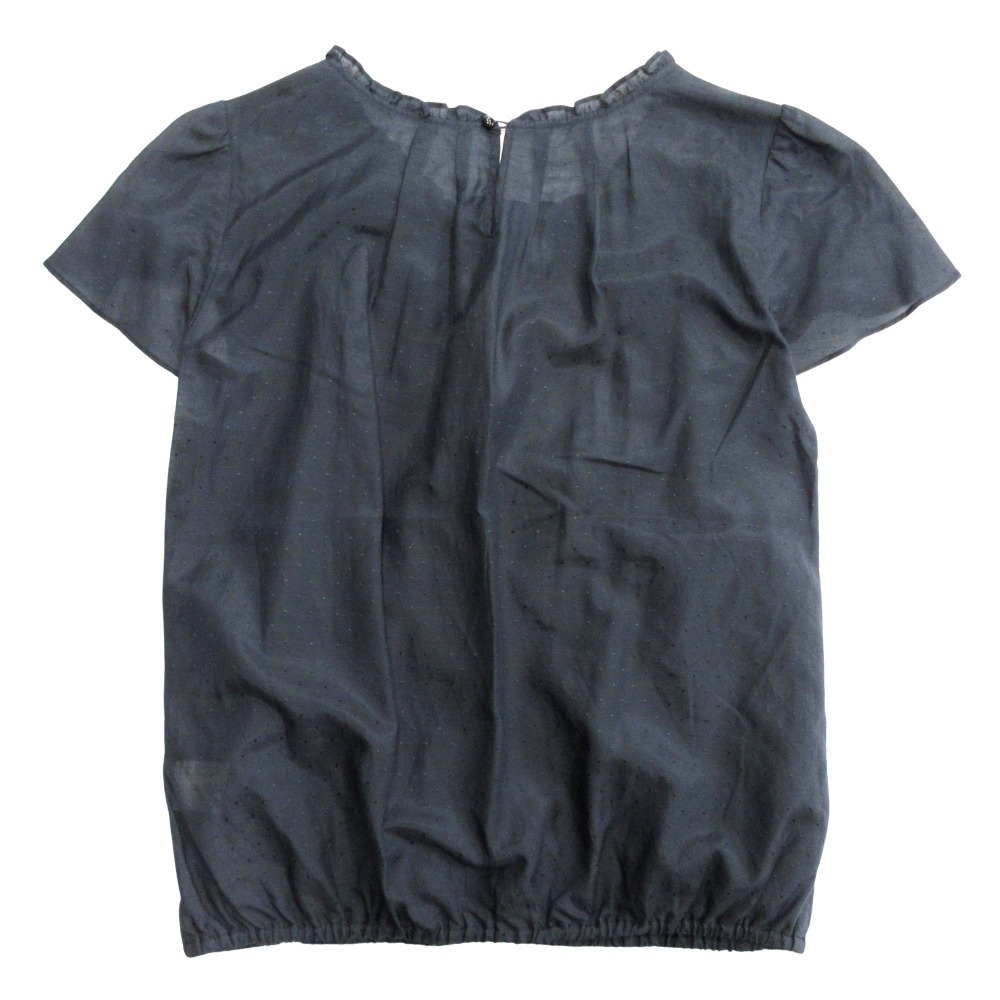 商品名:BEAMS HEART ビームスハート プチドット シアー ブラウス シルク混 フリルカラー カットソー 裾ゴム 黒系