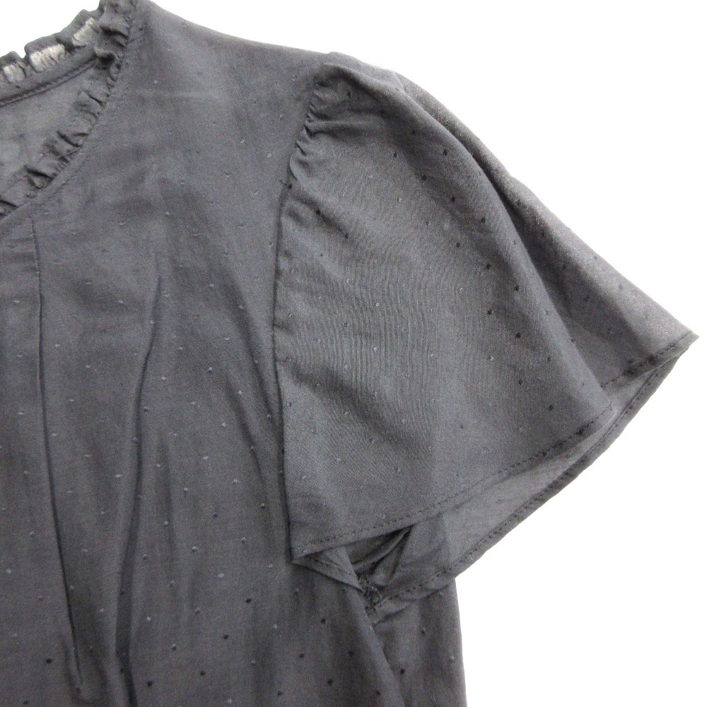 美品 BEAMS HEART ビームスハート プチドット シアー ブラウス シルク混 フリルカラー カットソー 裾ゴム 黒系