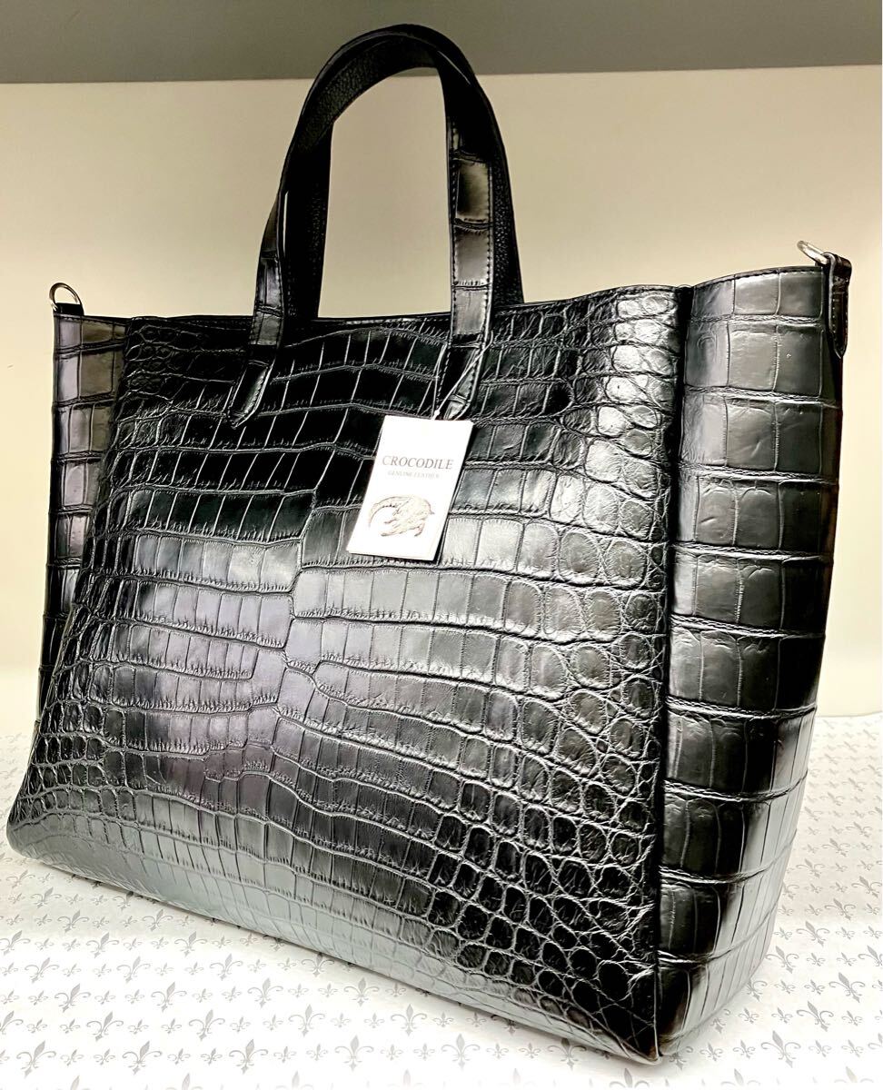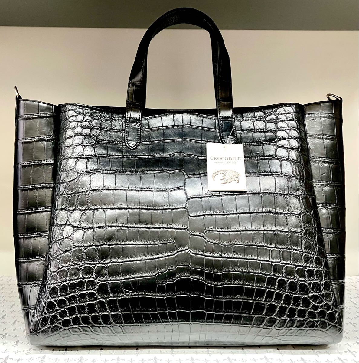 クロコダイル、ワニ革使いの手提げ&ショルダートート