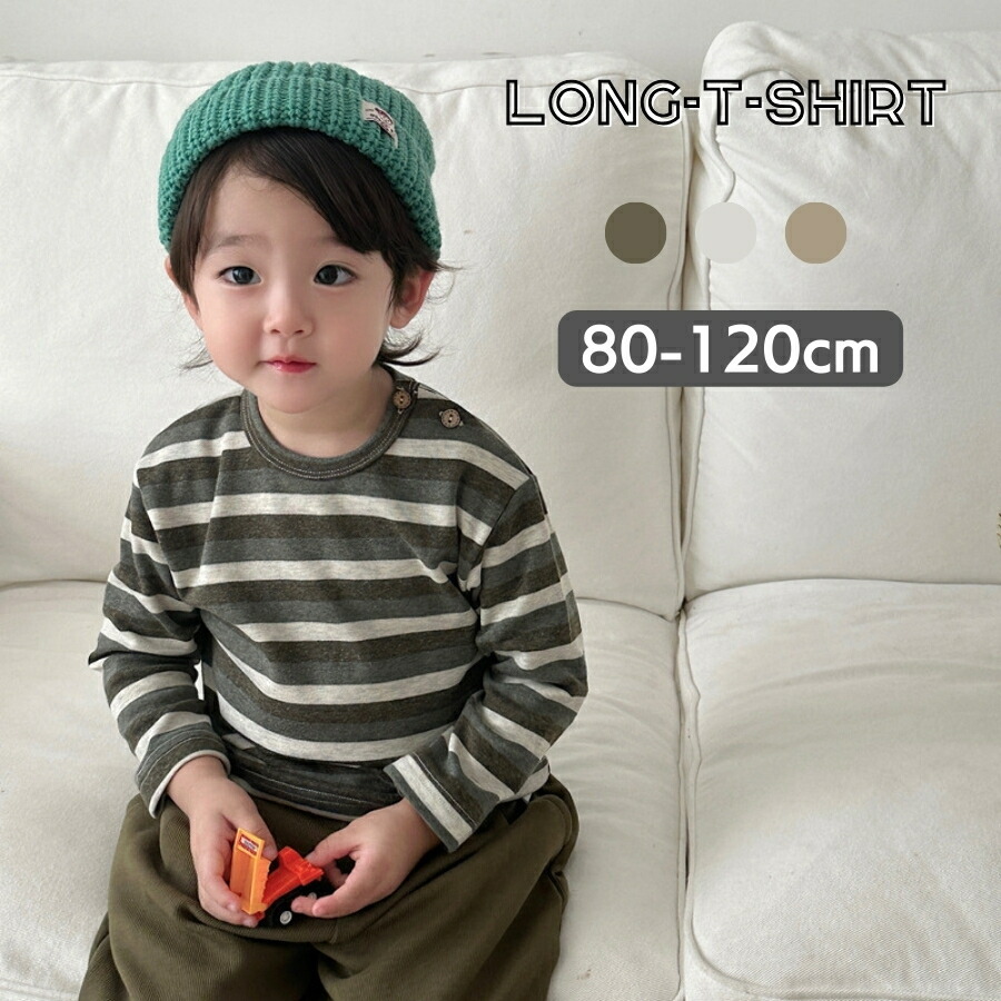 商品名 | アイボリー 110cm 長袖 ボーダー柄 ロンT 綿 Tシャツ カットソー インナー ジュニア キッズ 男女兼用 男の子 女の子 韓国子供服 3color 80cm 90cm 100cm 110cm 120cm |