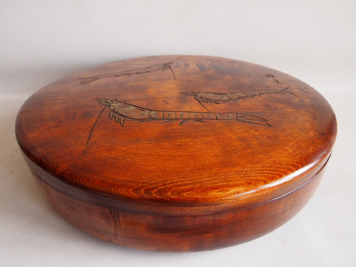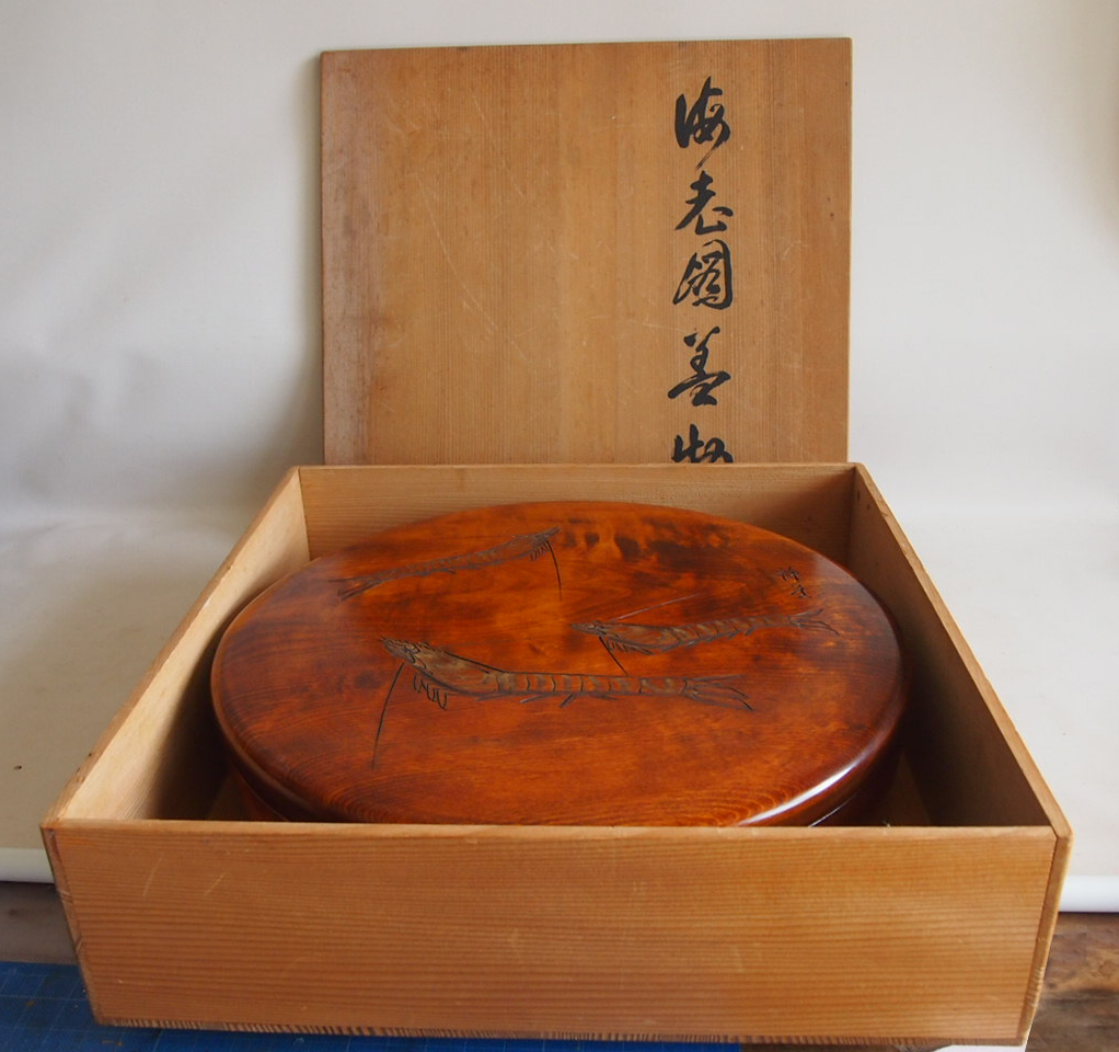 昭和レトロ 漆塗 海老図 寿司桶42cmです。