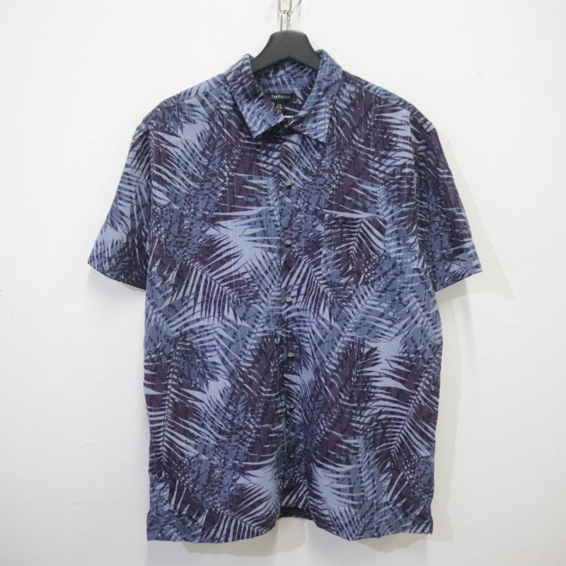 G745 2000年代製 VANHEUSEN 半袖シャツ■00s 表記Lサイズ ブルー ボタニカル 総柄 アメカジ ストリート 古着 古着卸 ヴィンテージ 激安